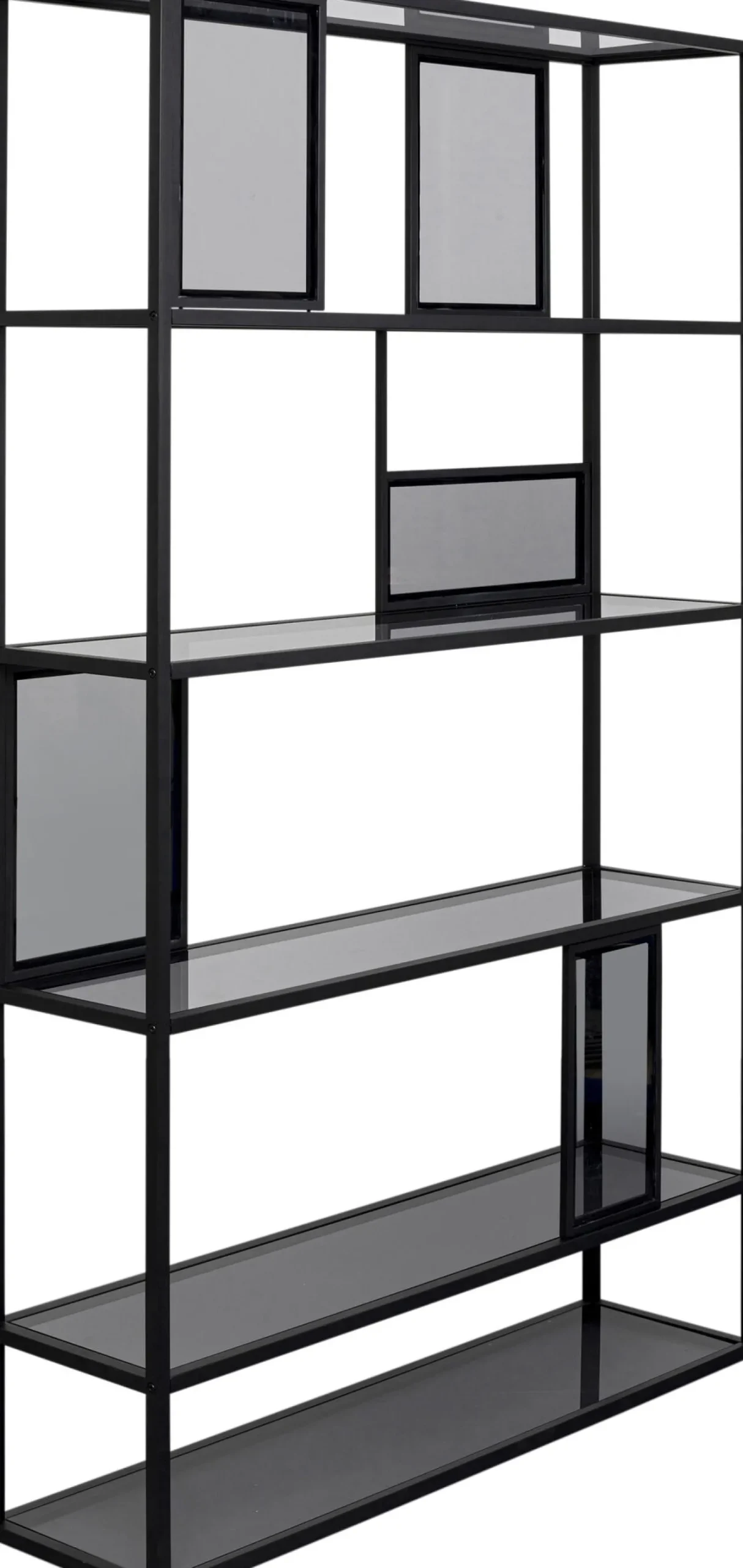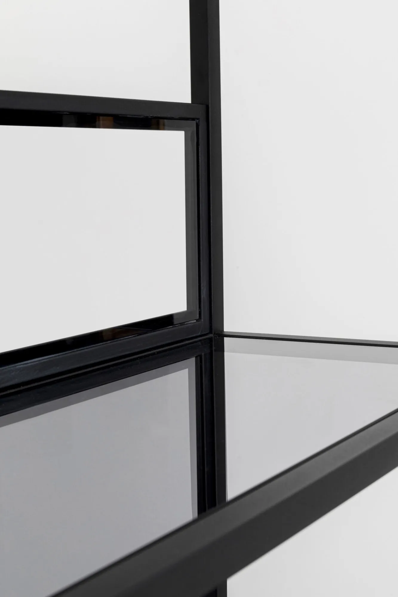 Regał stojący półki szklane przydymione rama czarna stalowa 115×195 cm