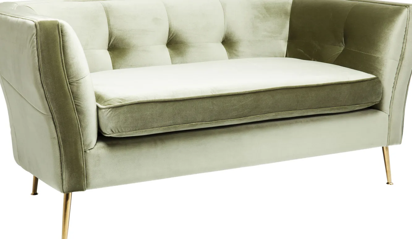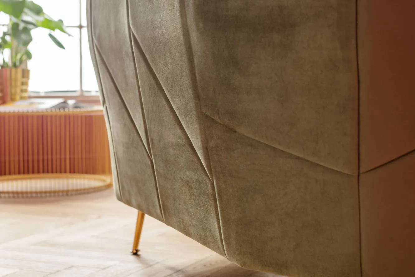 Jeśli sądzicie, że musicie wybierać pomiędzy elegancją a wygodą, kiedy mowa o aranżacji wnętrz, to nie w przypadku tej nowoczesnej 2 osobowej sofy w stylu glamour od firmy KARE. Niemiecka marka kocha różnorodność, dzięki czemu, bez względu czy zależy Wam na najnowszych trendach czy preferujecie sprzyjającą odpoczynkowi przytulność, w ofercie tego producenta zawsze znajdziecie coś zgodnego z Waszymi oczekiwaniami. Ten mebel pozwoli poczuć się jak w domu nawet w pubie czy hotelowym lobby. Wsparta na filigranowych nóżkach ze stali w złotym wykończeniu sofa 2 osobowa z pewnością przemówi do wszystkich fanów wyrafinowanego wzornictwa i nieprzeciętnego komfortu. Zwróciliście uwagę na lekko mieniącą się powierzchnię jej obicia? Delikatnie pluszowy materiał tapicerki rewelacyjnie współpracuje ze światłem i jest ceniony ze swój dekoracyjny charakter. Prezentowana sofa welurowa ubrana została w rzadko wykorzystywany, a niesłusznie, oliwkowy kolor. Wyważona, pozbawiona krzykliwości estetyka sprawi, że poradzi sobie w szeregu współczesnych nurtów wnętrzarskich.