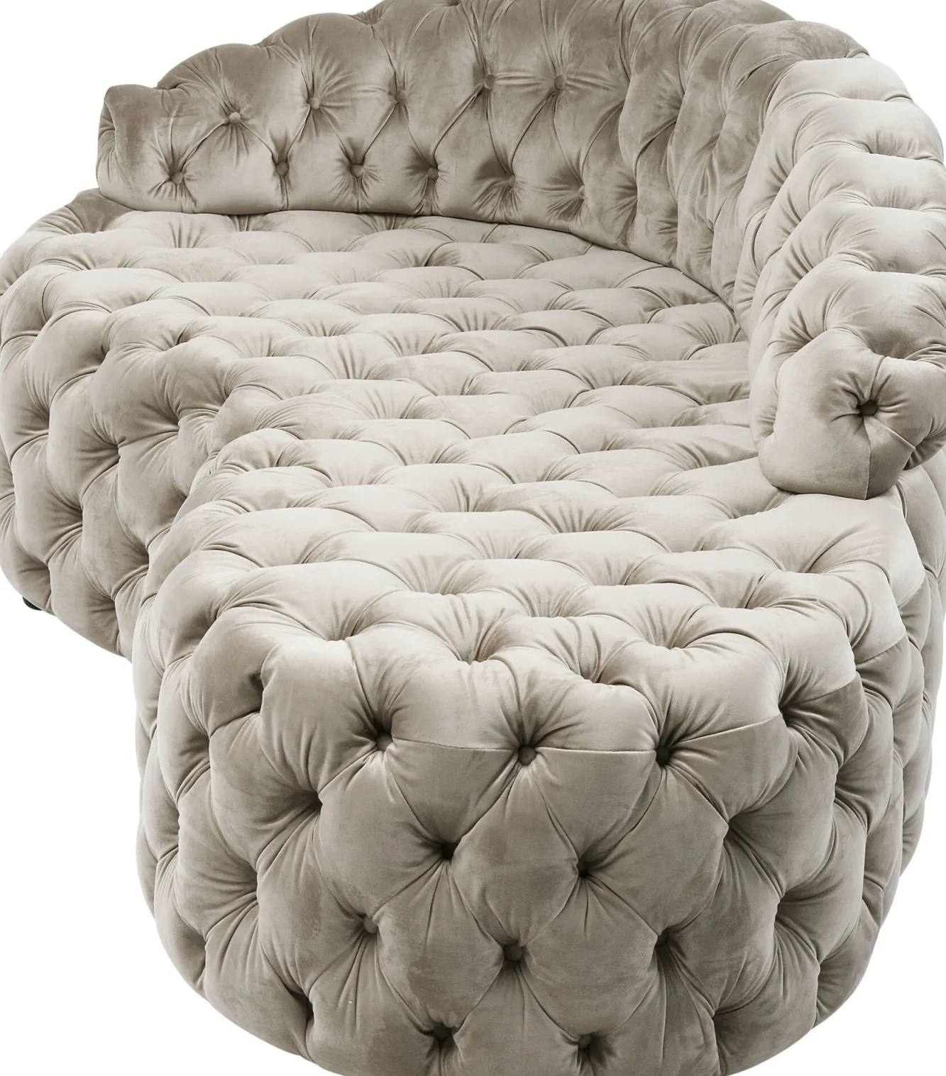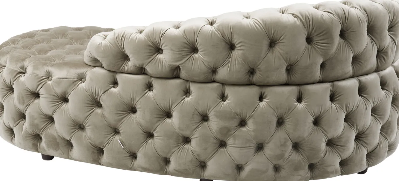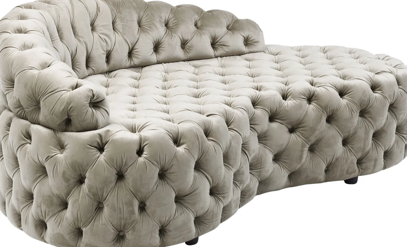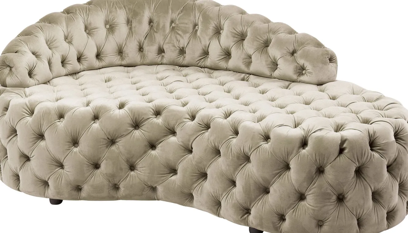 Do naszej oferty dumnie wkracza ta nowoczesna sofa w stylu glamour od ekskluzywnej firmy KARE. Niemiecka marka od ponad trzech dekad odsłania przed nami swoją bezkompromisową wizję home designu, czym pomaga spełniać marzenia o pięknym i oryginalnym wyposażeniu wnętrz. Tutaj mamy do czynienia z modelem w klasycznym kształcie nerki, z niskim oparciem, o welurowej powierzchni oraz w szalenie wytwornym kolorze szampana. Taka wyrafinowana sofa tapicerowana zaprosi pod Wasz dach hollywoodzki splendor, a dzięki bujnej, obfitej sylwetce możecie liczyć na komfort i miękkość. Prezentowana sofa beżowa ma prawdziwy potencjał na gwiazdę. Będzie błyszczeć i w salonie i w dużym holu.