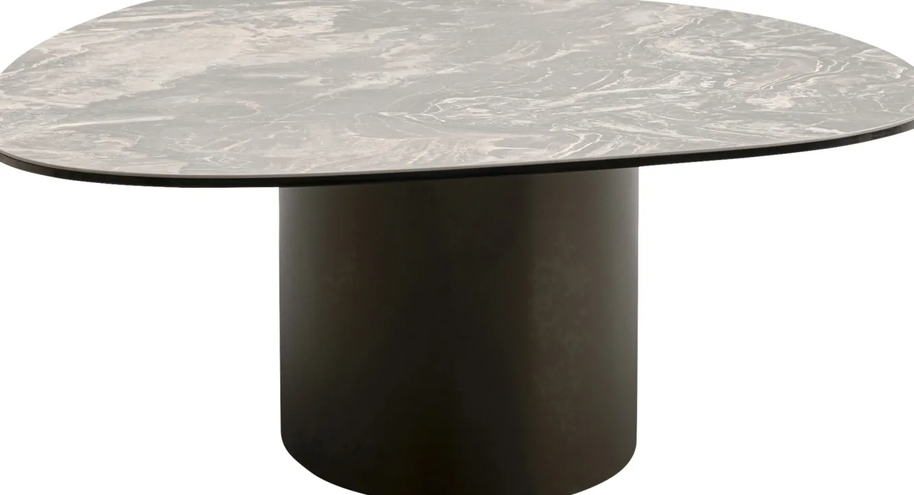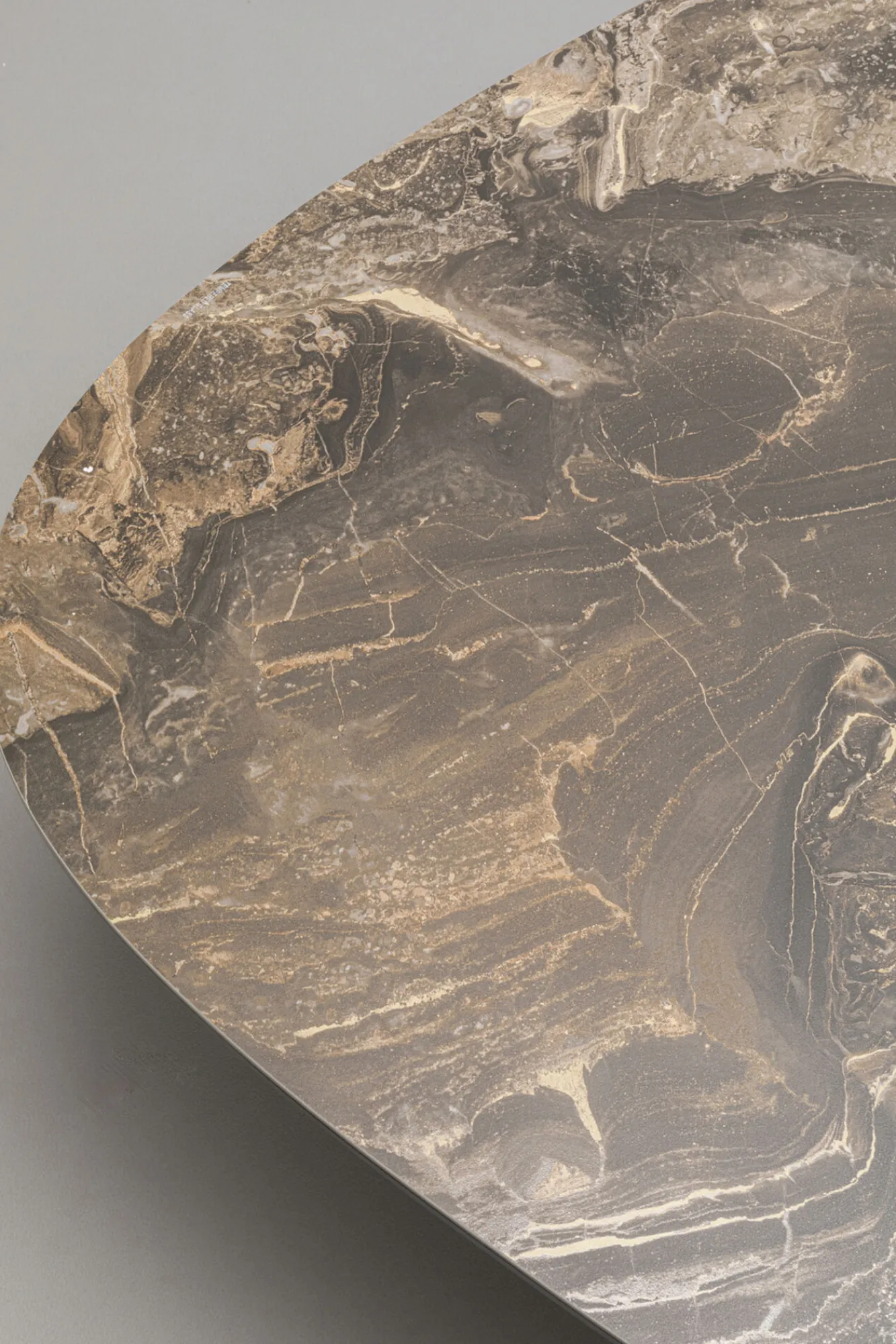 Stolik kawowy brązowy blat kamionkowy podstawa stalowa 150×86 cm Blat: kamionka lakierowana (3 mm), szkło hartowane, b…