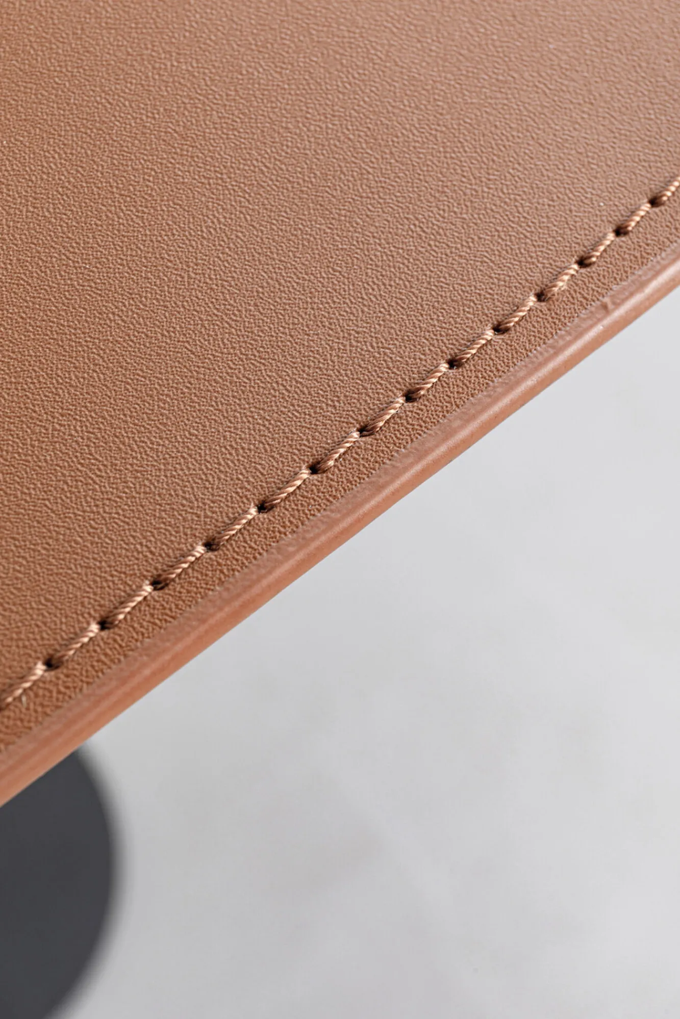 Stolik pomocniczy czarno-brązowy blat tapicerowany 61×39 cm Materiały: stal malowana proszkowo, ekoskóra (tkanina pok…