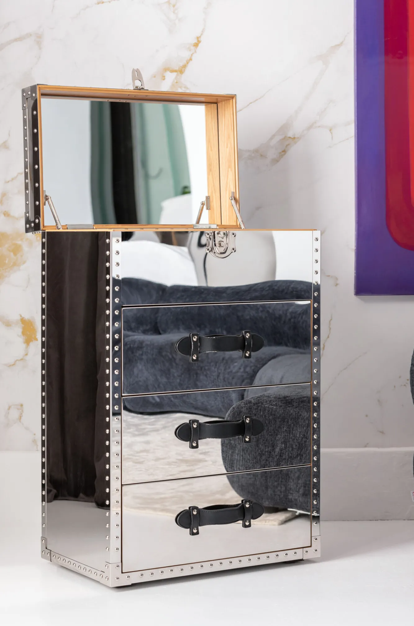 Toaletka z lustrem i szufladami glamour stal nierdzewna 65×100 cm Uchwyty (szuflady): ekoskóra.Konstrukcja: płyta MDF …