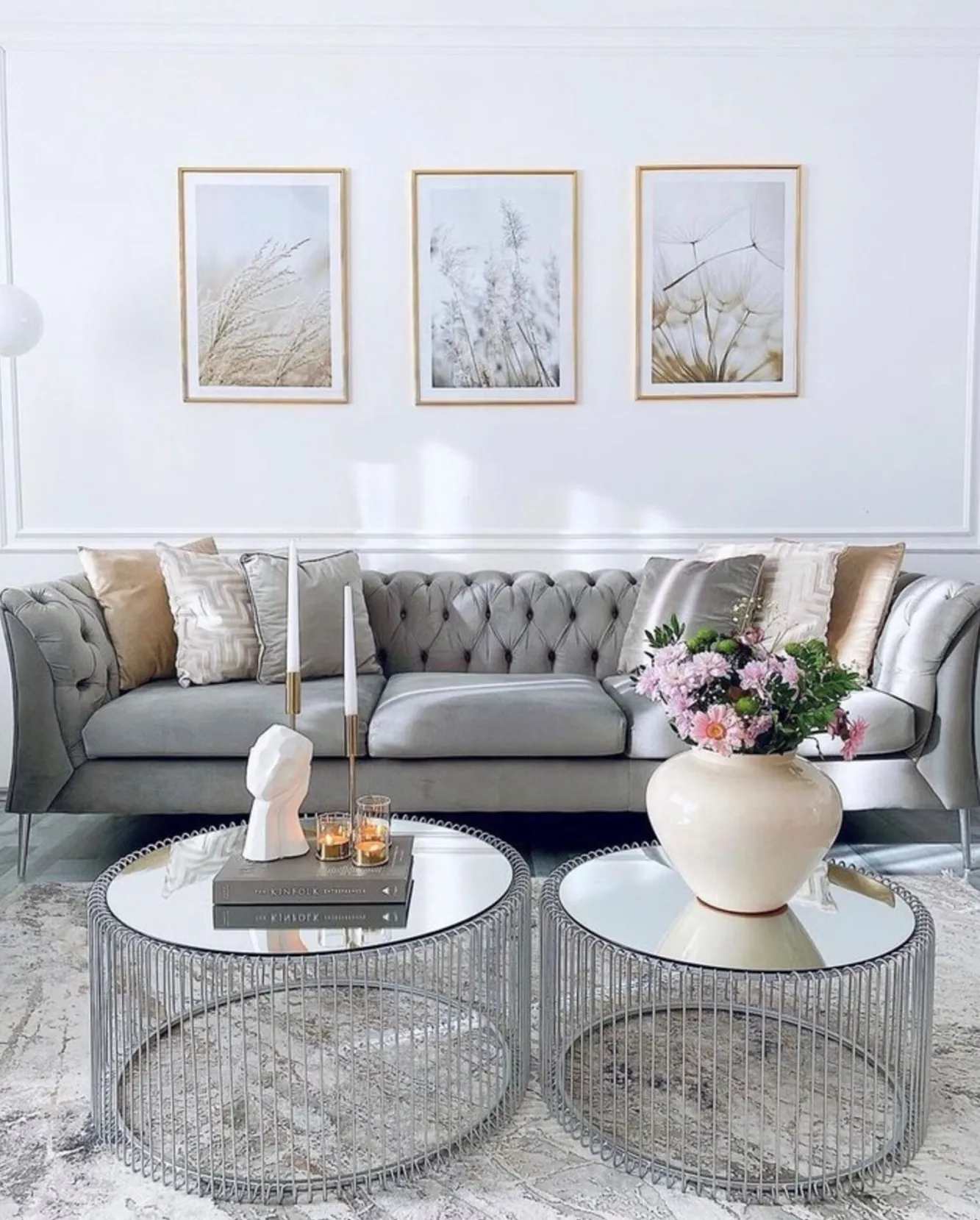 Zestaw dwóch stolików kawowych Wire srebrne Wymiary stolików (średnica x wysokość):- duży: 69,5 × 33,5 cm;- mał…