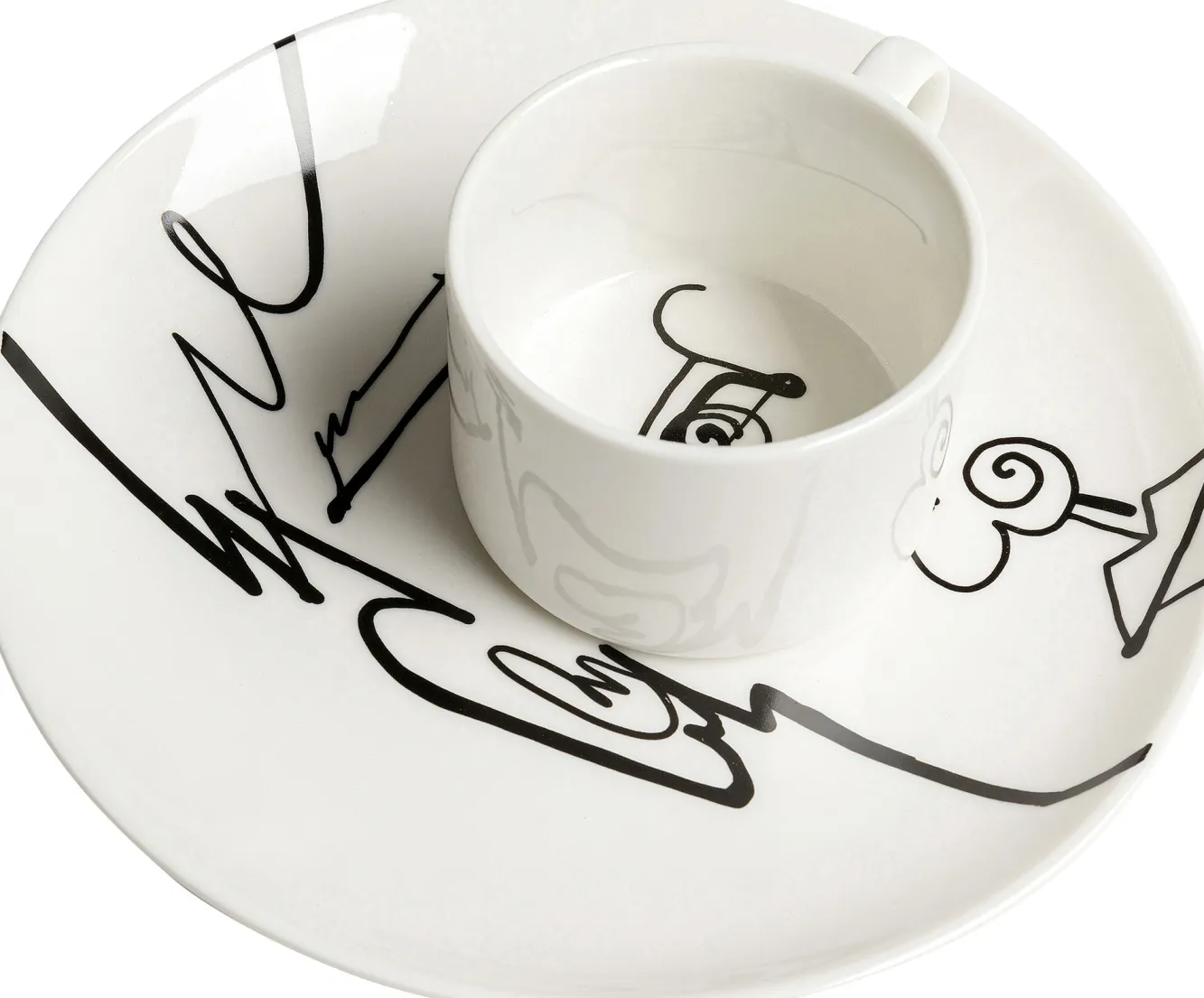 Filiżanka ze spodkiem biała wzory czarne 160 ml