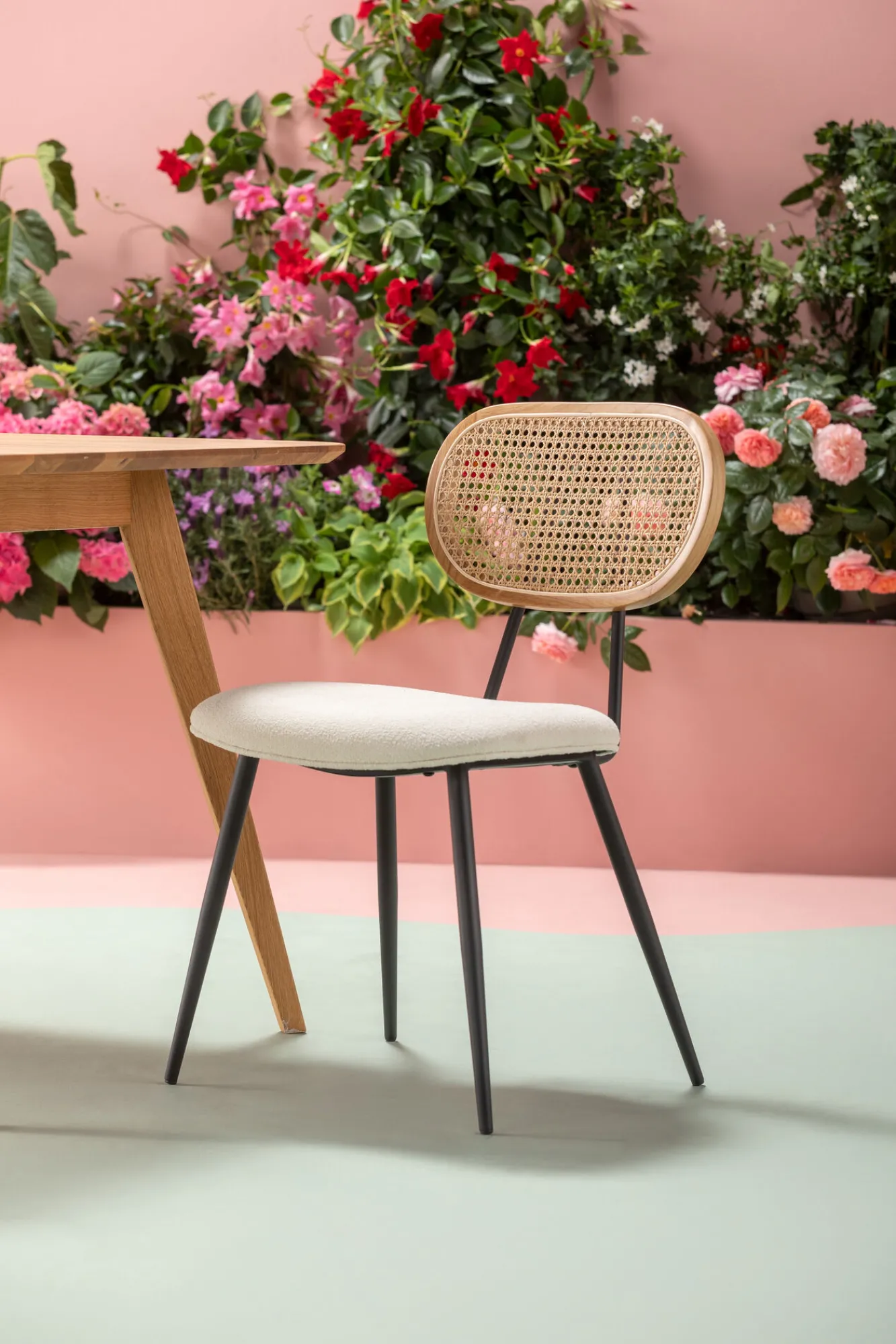 Krzesło do jadalni kremowe oparcie naturalne nogi stalowe 47×81 cm