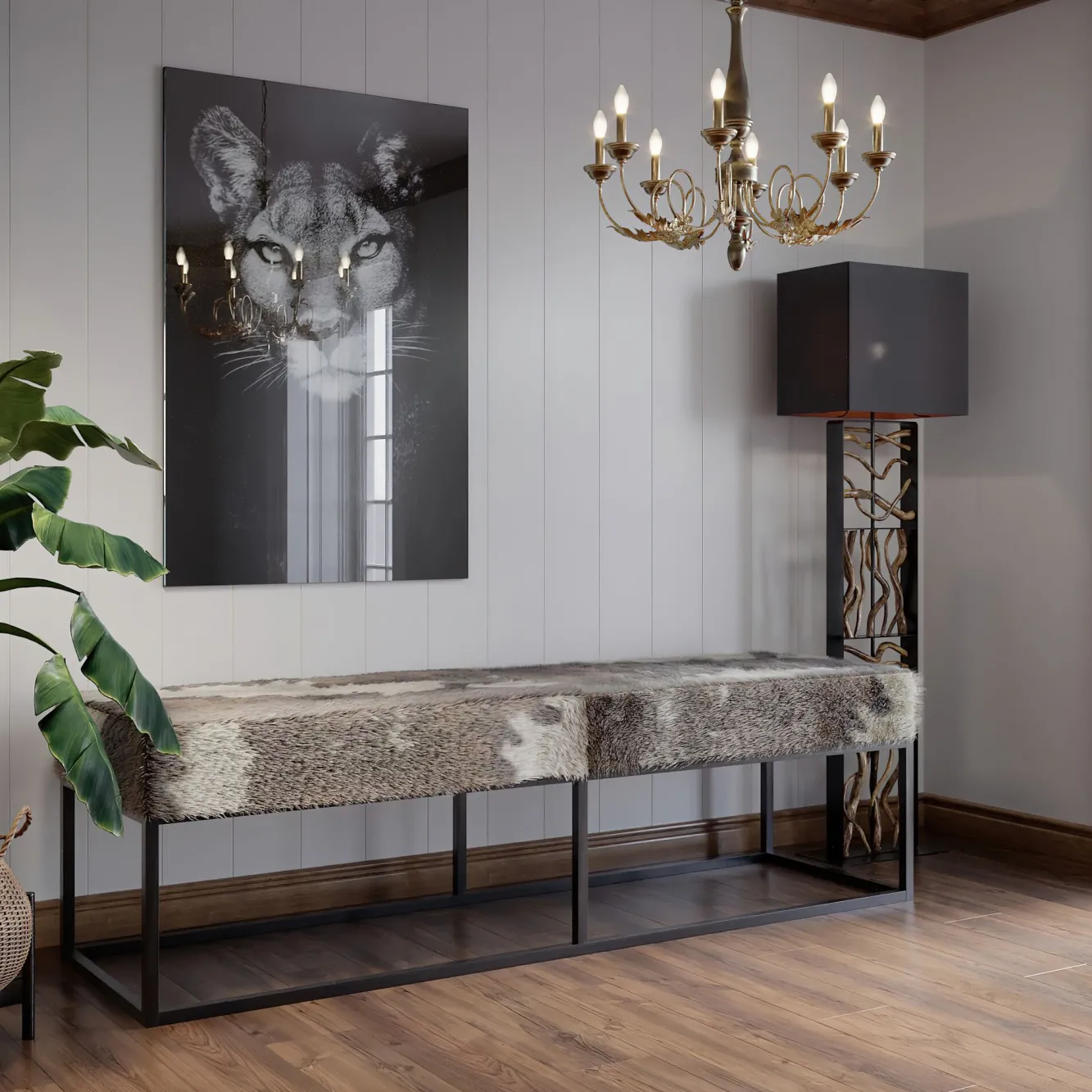 Ławka Country Life marki Kare Design na stalowych nogach.