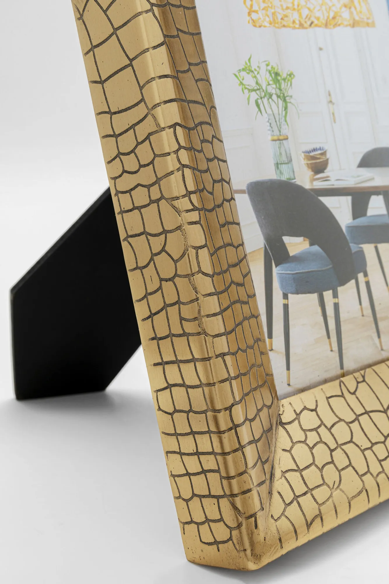 Ramka na zdjęcia złota wzór skóra krokodyla 20×25 cm Front: szkło transparentne.Rama: stal mosiężna.Stelaż: MDF …