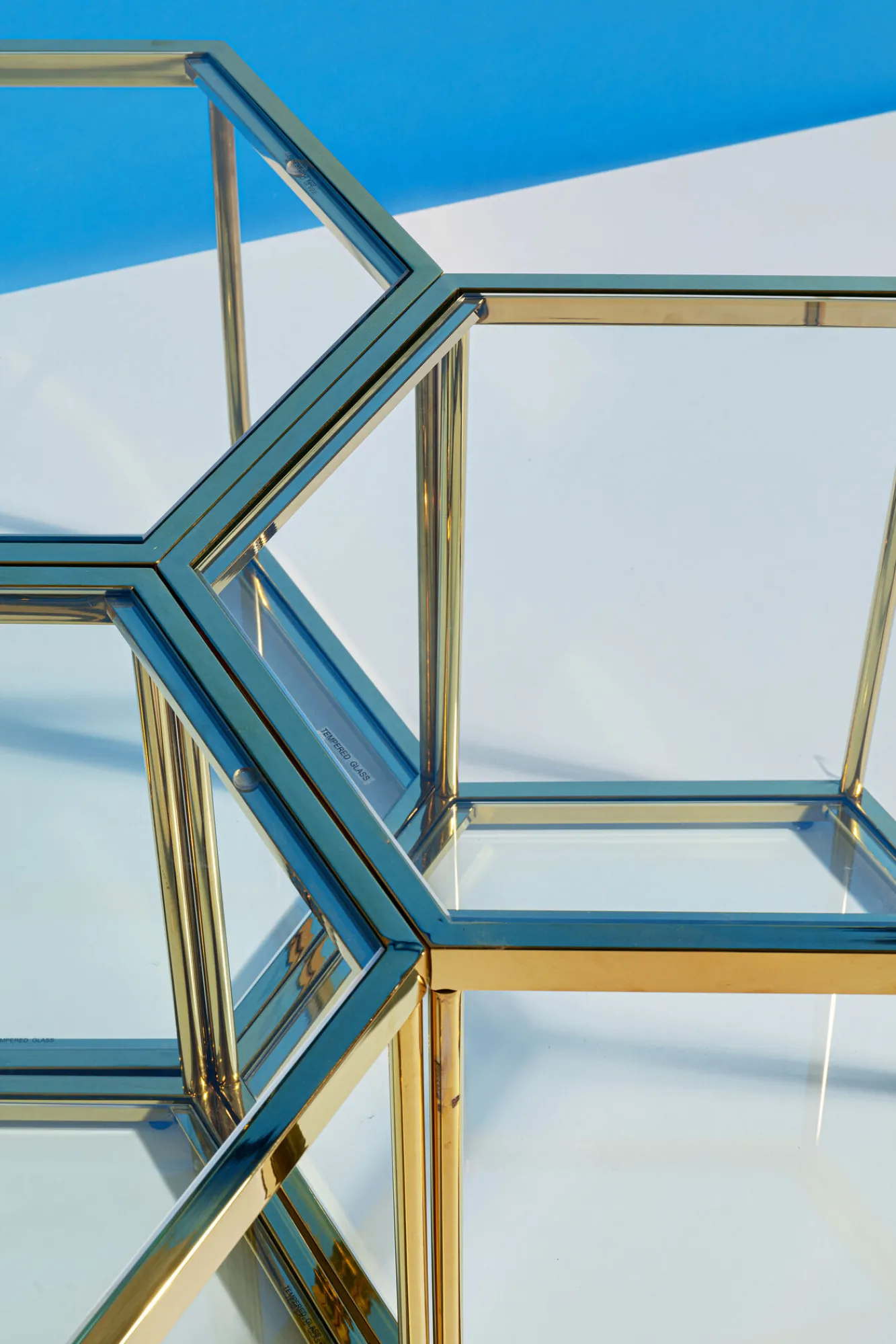Stolik kawowy Comb 55×48 cm złoty Blat: szkło hartowane 8 mm, Nogi: stal nierdzewna