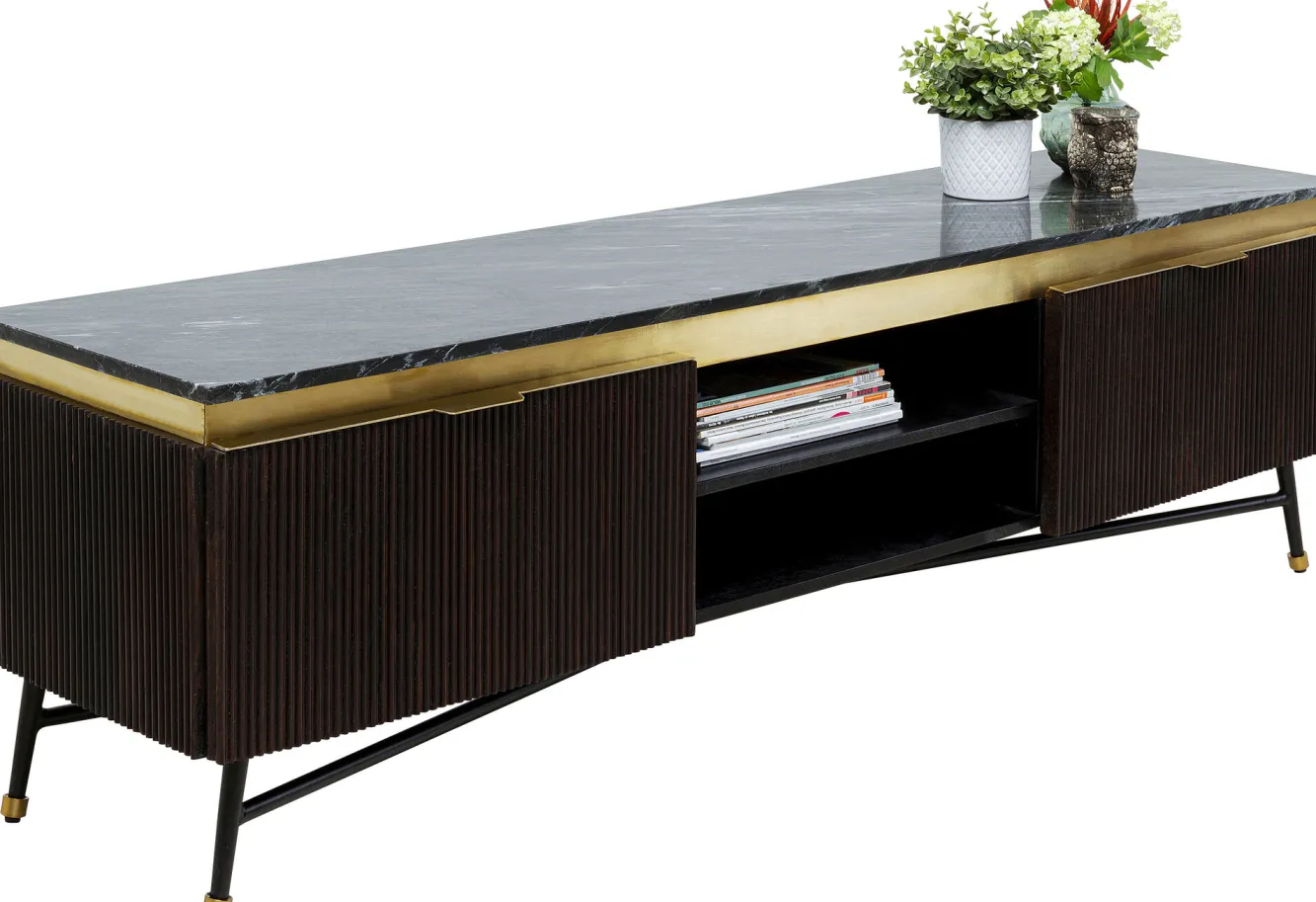 Szafka RTV Catalina 170×50 cm drewno mango ciemnobrązowe – blat marmur