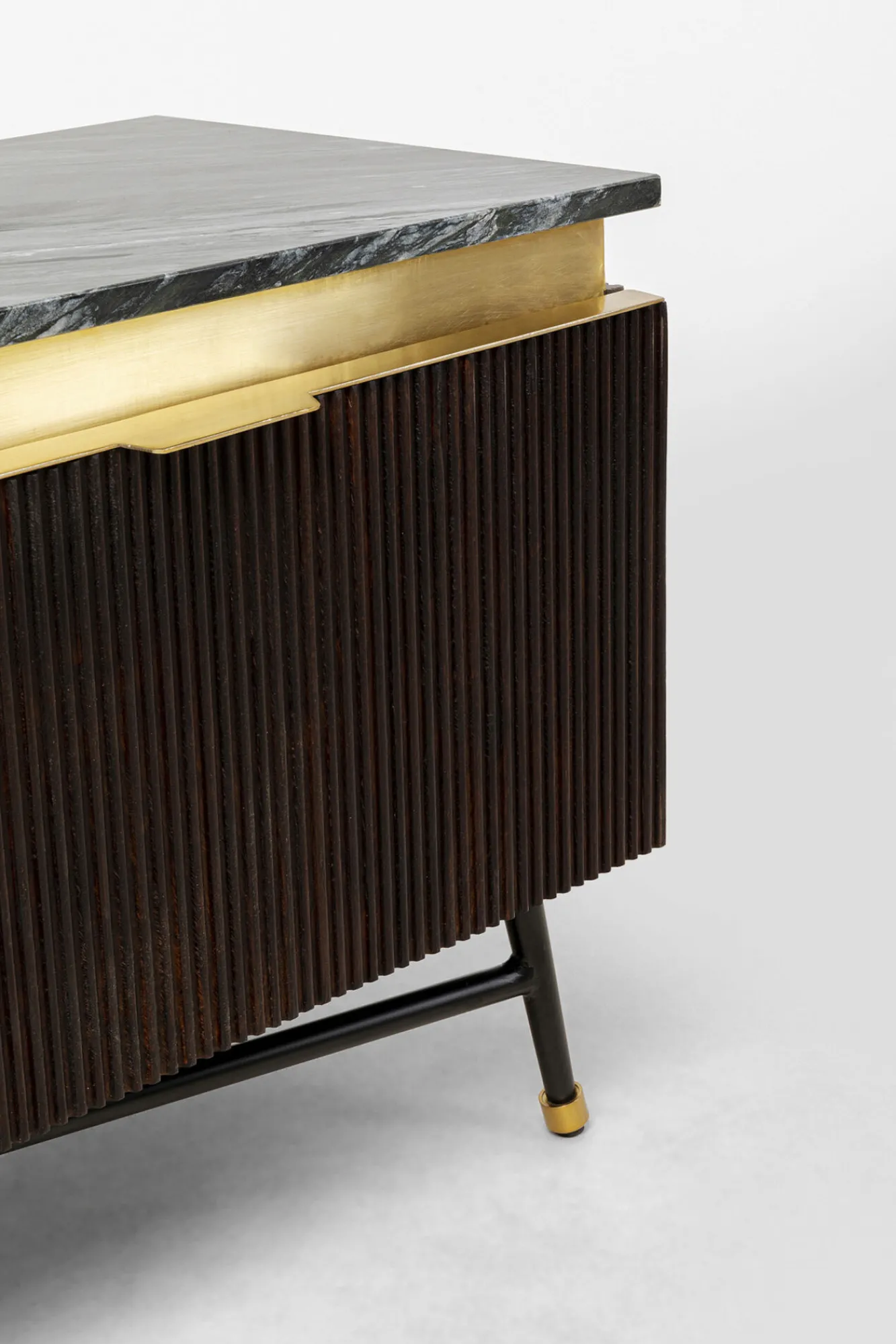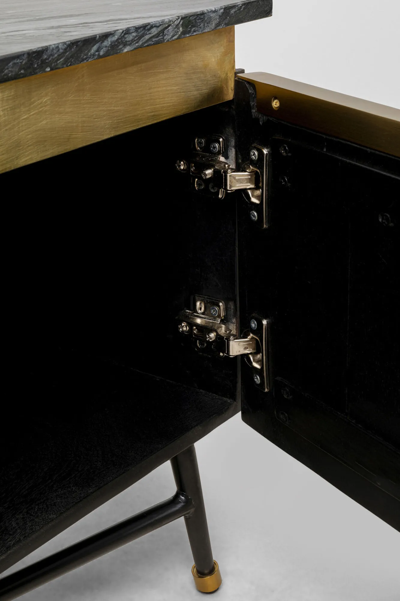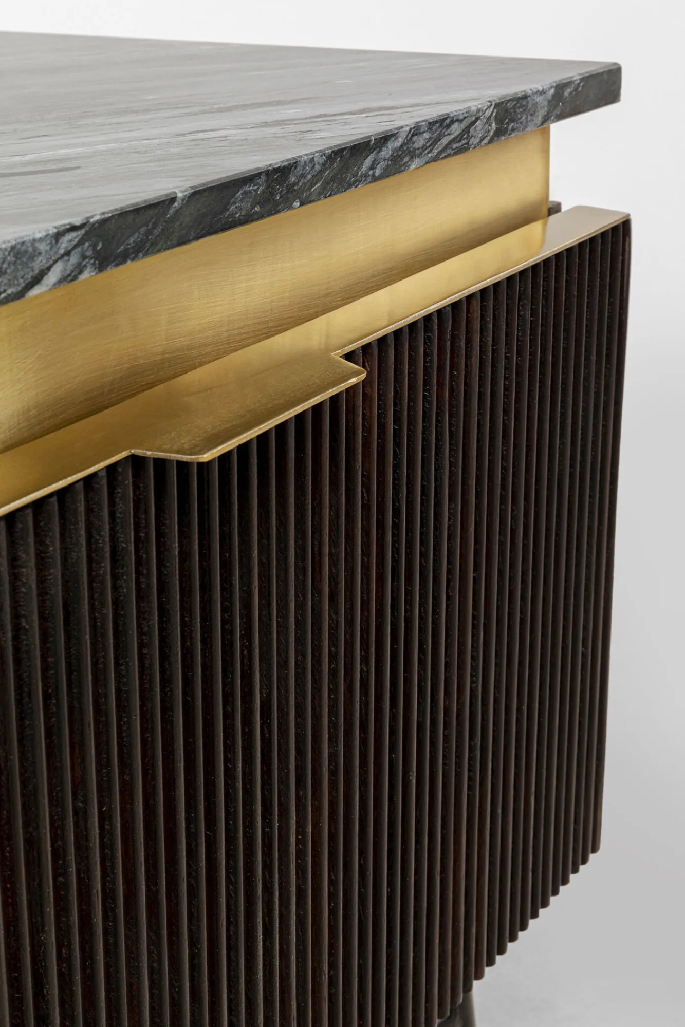 Złota dekoracja między blatem, a frontem: mosiądz szczotkowany.