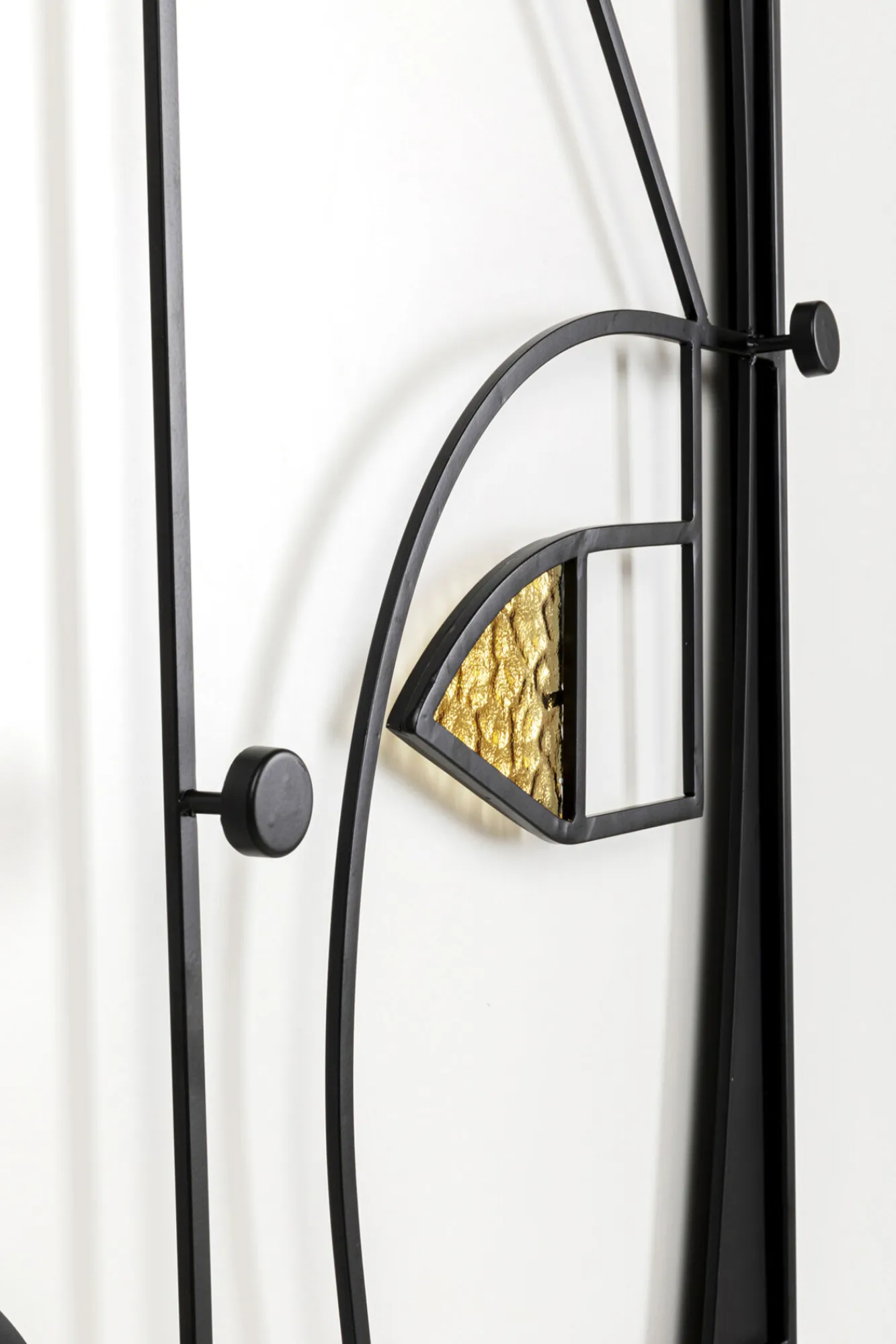 Wieszak ścienny czarno-złoty stal i szkło motyw twarzy 90×200 cm Materiały: stal lakierowana, szkło lakierowane.