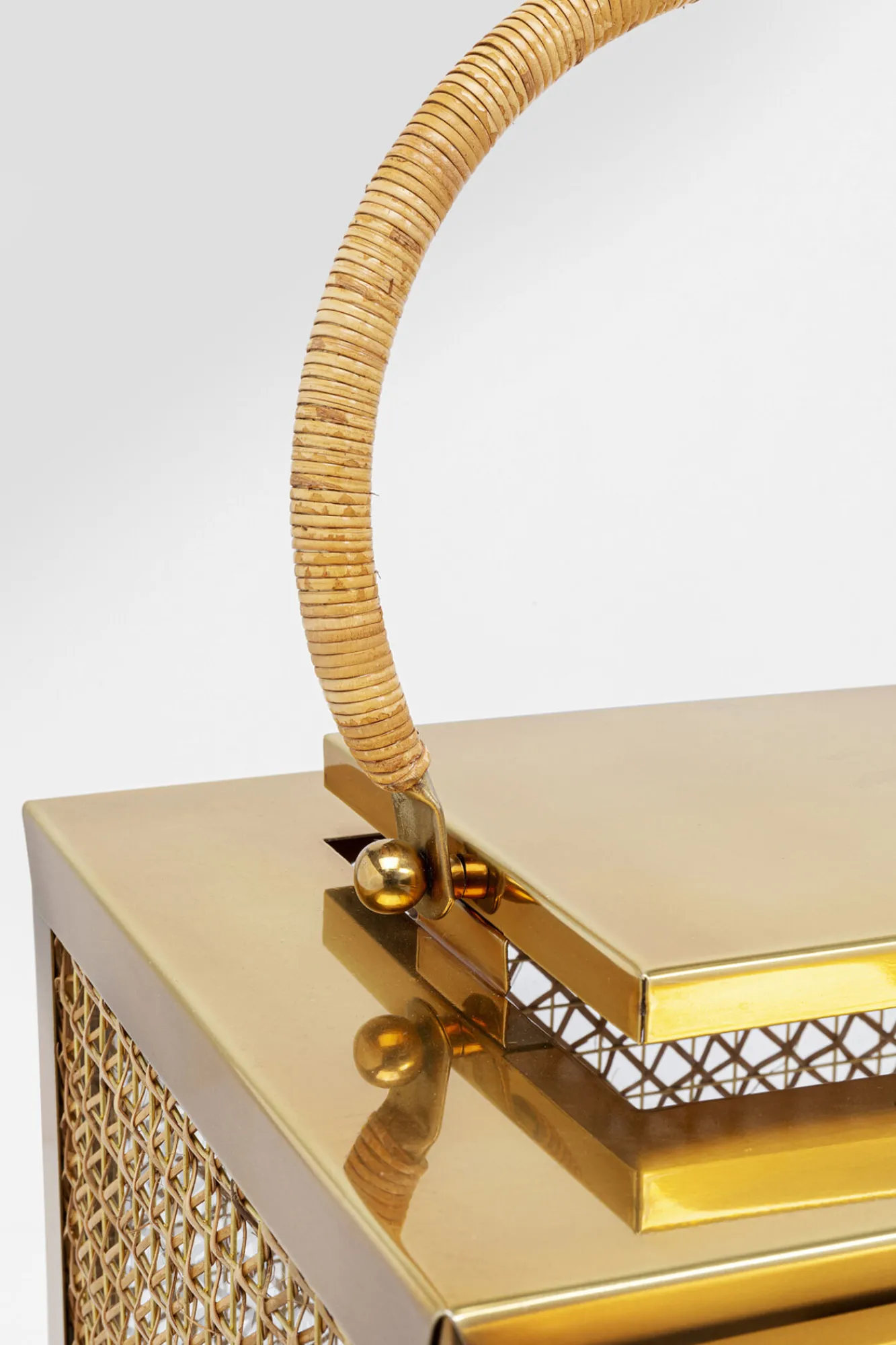 Zestaw 2 dużych latarenek złotych ze stali nierdzewnej i trawy morskiej Materiały: szkło transparentne, stal nierdze…