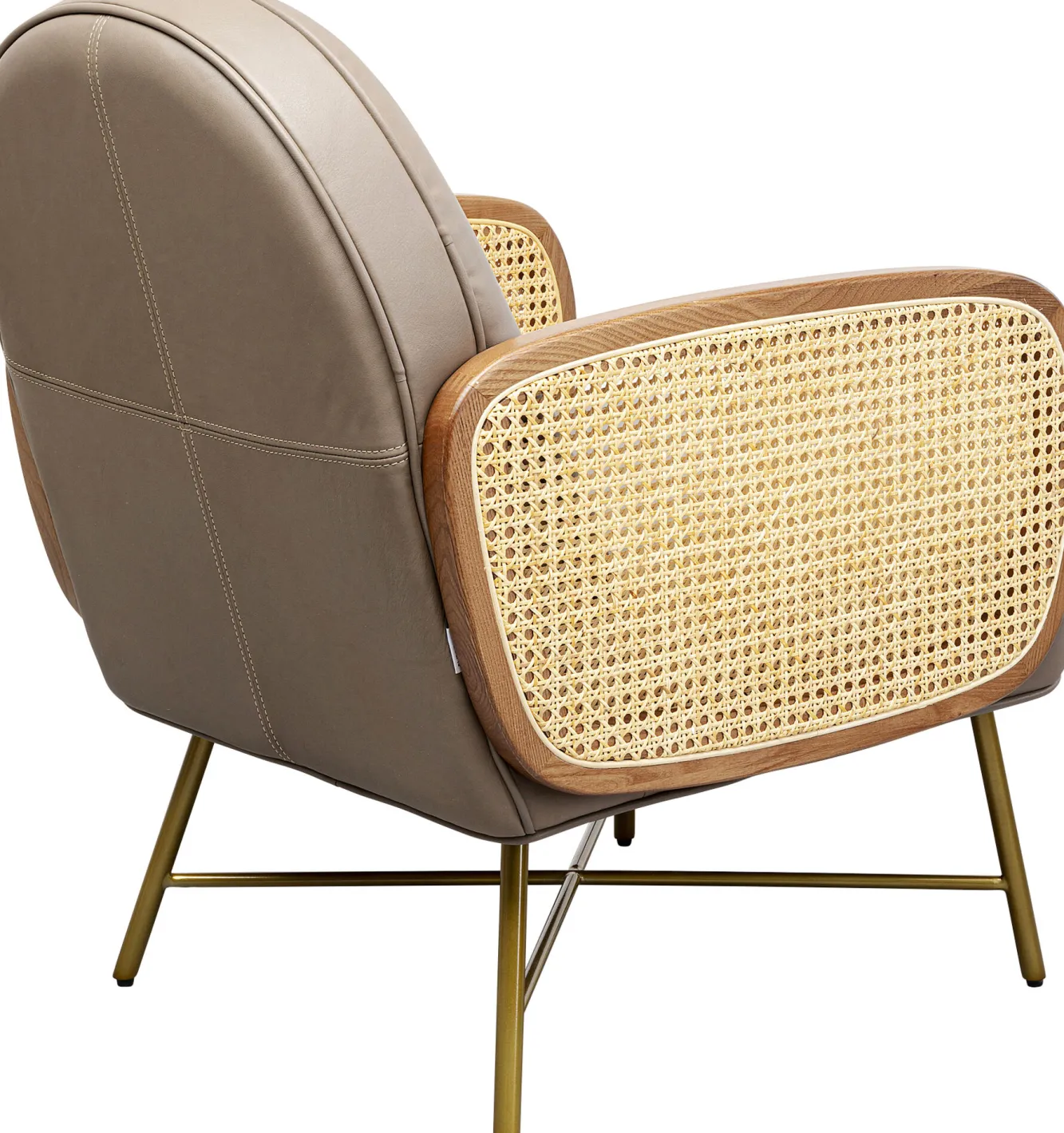 Fotel boho szary skóra semianilinowa podłokietniki naturalno-brązowe 60×80 cm
