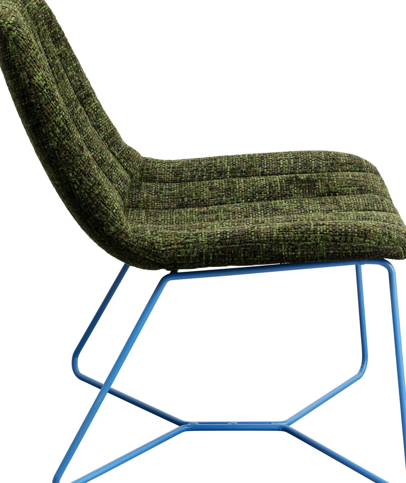 Fotel do salonu zielony z niebieskimi nogami 62×84 cm
