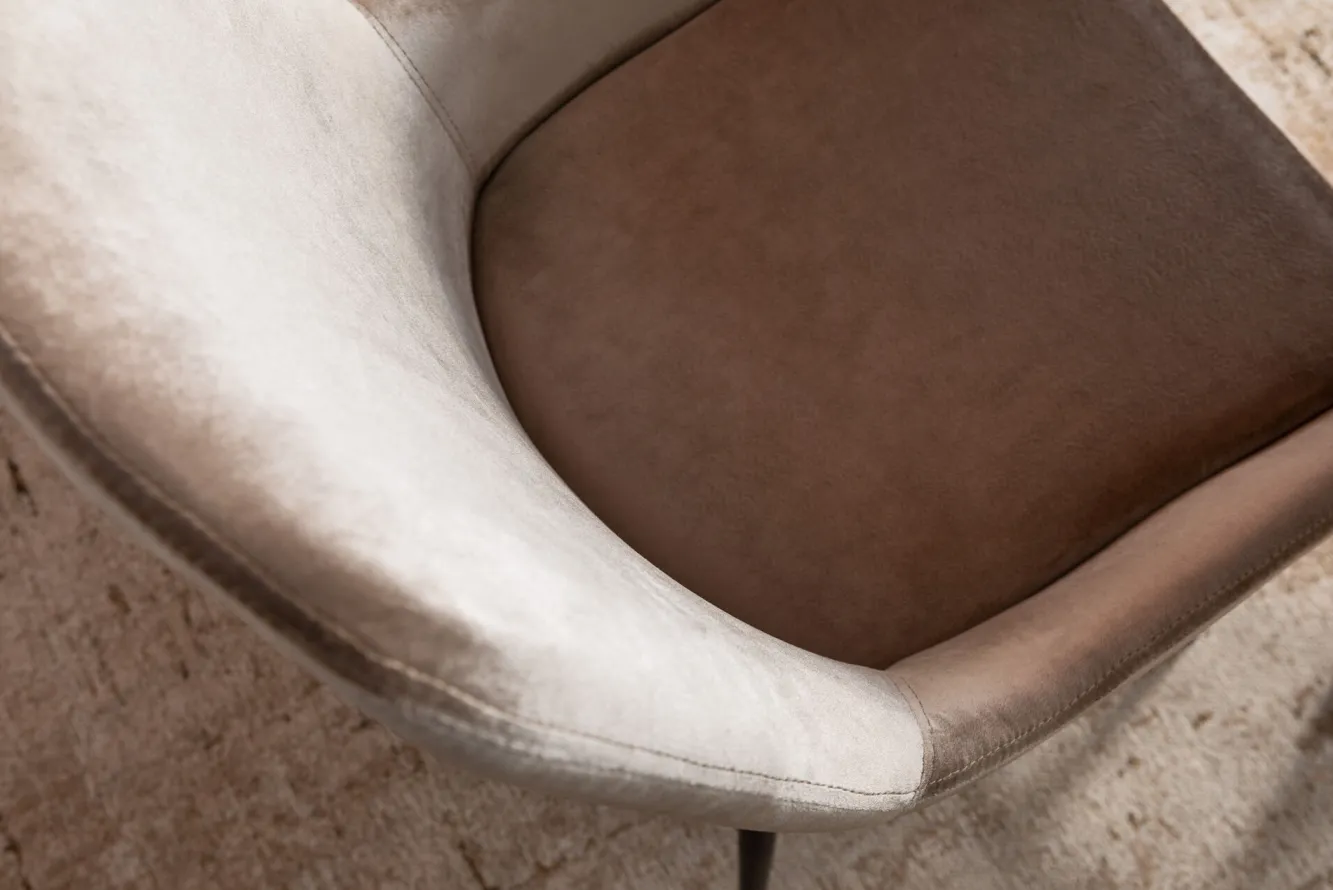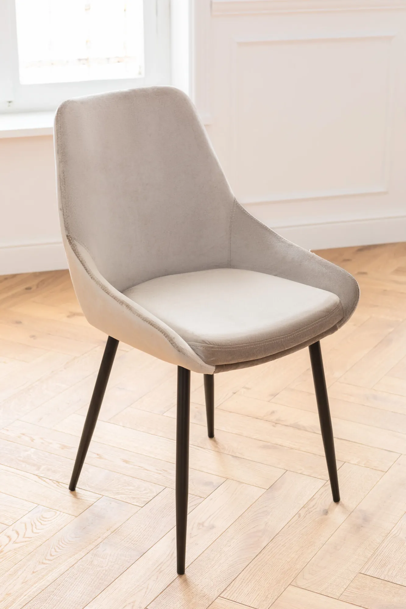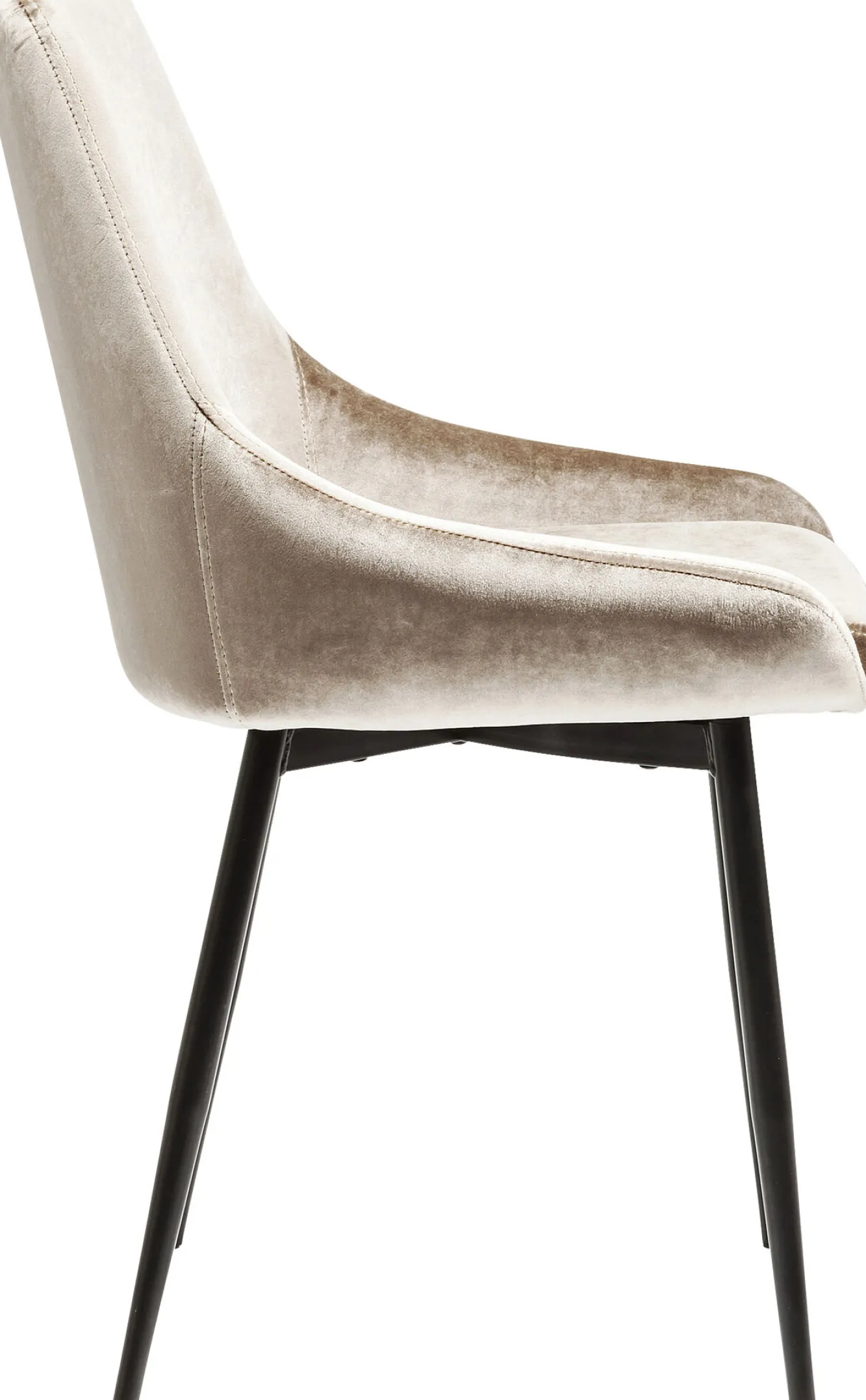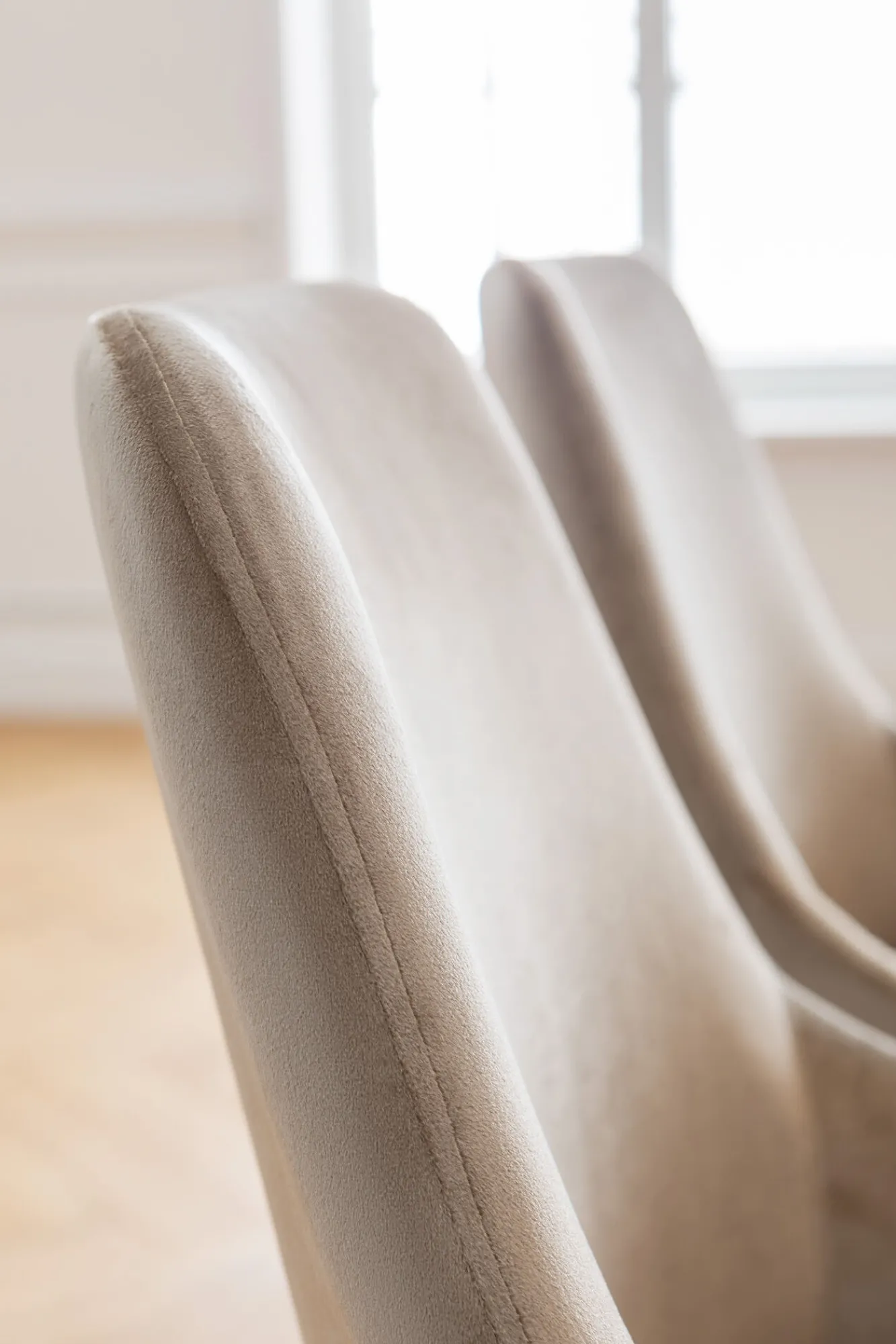 Nowoczesne tapicerowane krzesła w stylu glamour East Side dostępne są w kilku wariantach kolorystycznych – tutaj welurowe krzesło w kolorze kremowym.