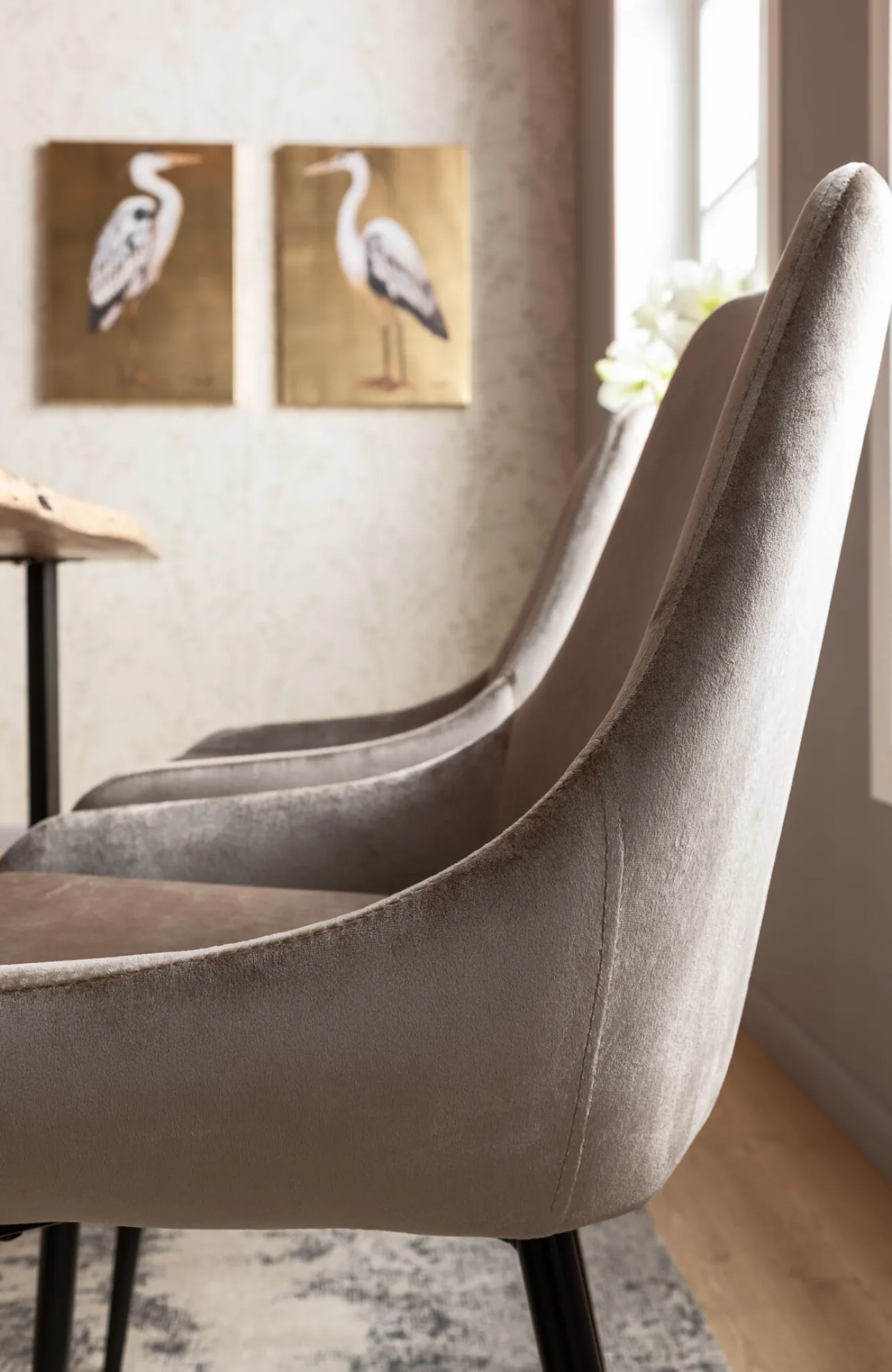 Nowoczesne tapicerowane krzesło w stylu glamour East Side już na pierwszy rzut oka sprawia niezwykle przytulne wrażenie i zachęca do wypoczynku. Wszystko za sprawą welurowej tkaniny obiciowej, której dająca się poczuć w dotyku miękkość niesie ze sobą niezwykły komfort i wygodę. Ale to jeszcze nie wszystko. Czy zwróciliście uwagę na lekko mieniącą się powierzchnię? Plusz rewelacyjnie współpracuje ze światłem, dzięki czemu jest ceniony ze względu na swój dekoracyjny i szykowny charakter. Wykorzystanie tego krzesła welurowego w eleganckim salonie zdaje się naturalną koleją rzeczy.