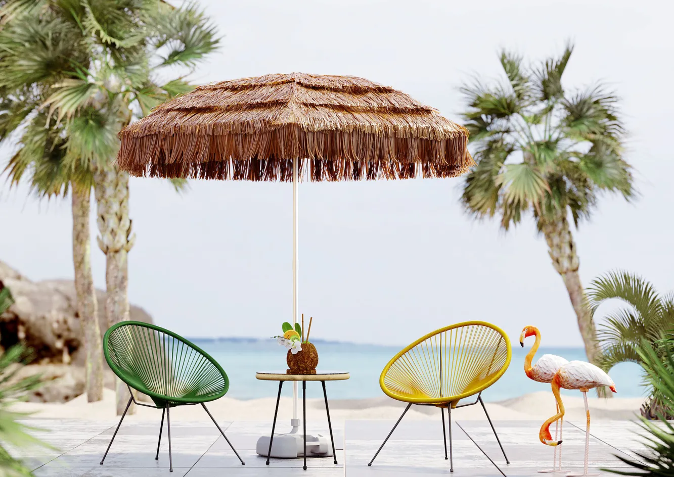 Stolik kawowy Acapulco Ø50 cm naturalny – blat szklany
