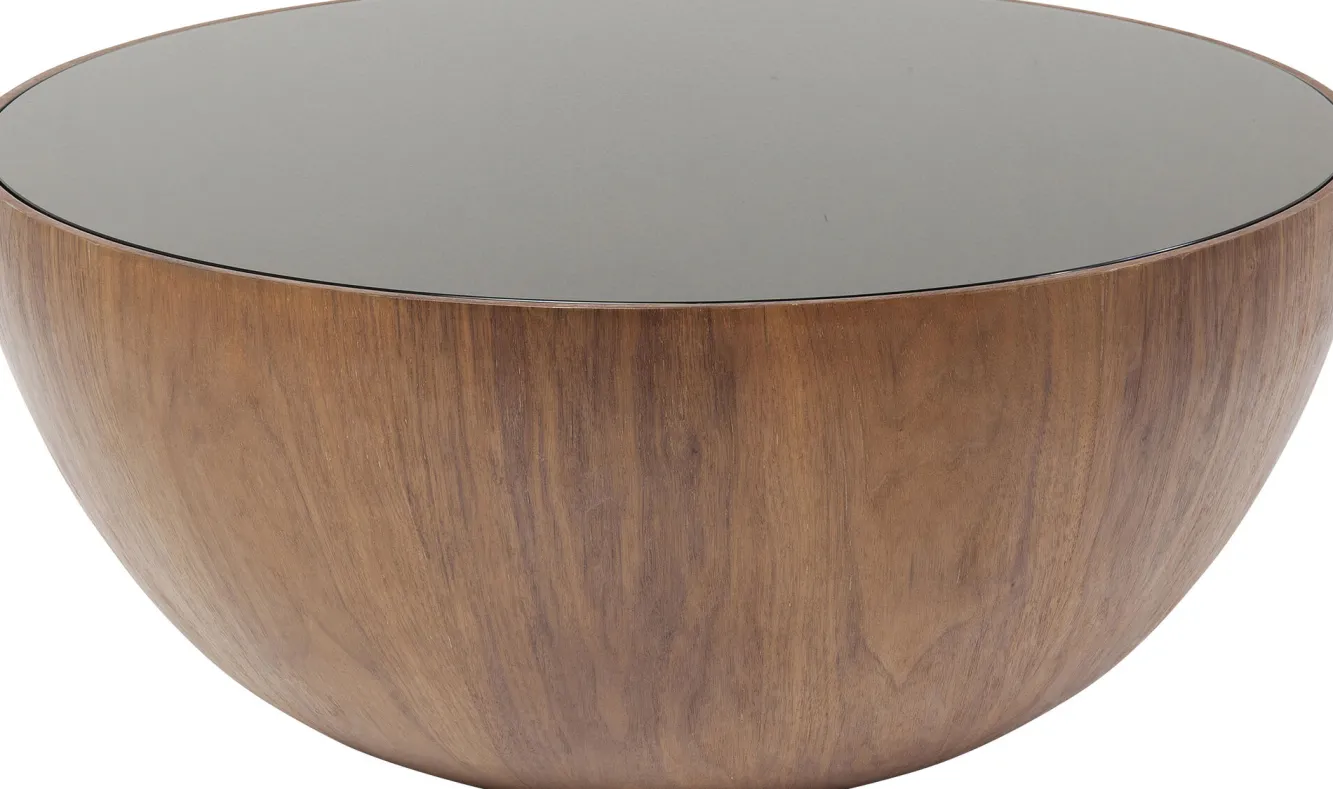 Zabawa formami geometrycznymi to zabieg, który nada twojemu wnętrzu oryginalnego charakteru. Nietypowy kształt stolika przywodzi na myśl połówkę kokosa. Dodatkowo, połączenie orzechowego koloru podstawy z czernią szklanego blatu jest klasyczne i eleganckie. Do wykonania stolika użyto szkła oraz fornirowanej płyty MDF. Wymiary to 80×35 cm (średnica x wysokość).