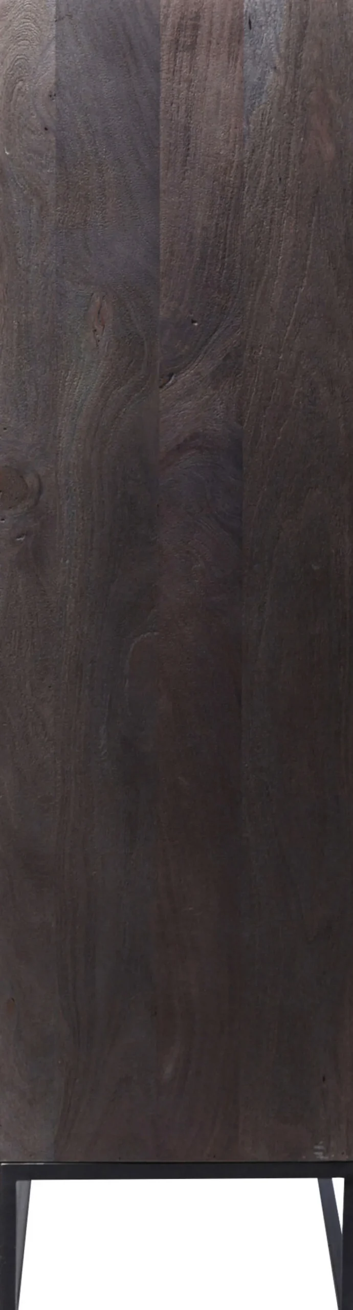 Awangardową czarną komodą drewnianą Circula zawdzięczamy znanej z wyrafinowanego wzornictwa firmie KARE. Niemiecka marka tutaj postawiła na wykorzystanie właściwości drewna, MDF (półki) i stali (nogi). Zastosowane rodzaje drewna: mango – charakteryzujące się przytulną, ciepłą barwą i wyraźnie zaznaczonym rysunkiem słojów – oraz akcji – wyjątkowo wytrzymałej na użytkowanie i odpornej na uszkodzenia mechaniczne, w tym przypadku skutkują nie tylko nowoczesnym designem, ale i funkcjonalnością. Za zdobionymi spiralnymi wzorami frontami drzwiczek komody, kryją się praktyczne półki, które można wykorzystać do organizacji wszelkiego typu przedmiotów codziennego użytku. Prezentowana drewniana komoda czarna pozbawiona jest nadmiernej krzykliwości i bez trudu wpisze się w liczne współczesne style aranżacyjne.