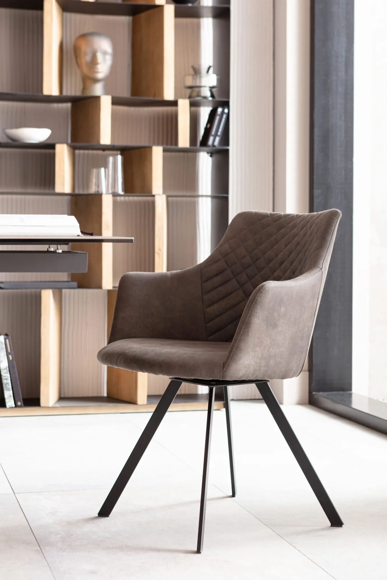 Krzesło z podłokietnikami obrotowe tapicerowane 53×84 cm antracytowe