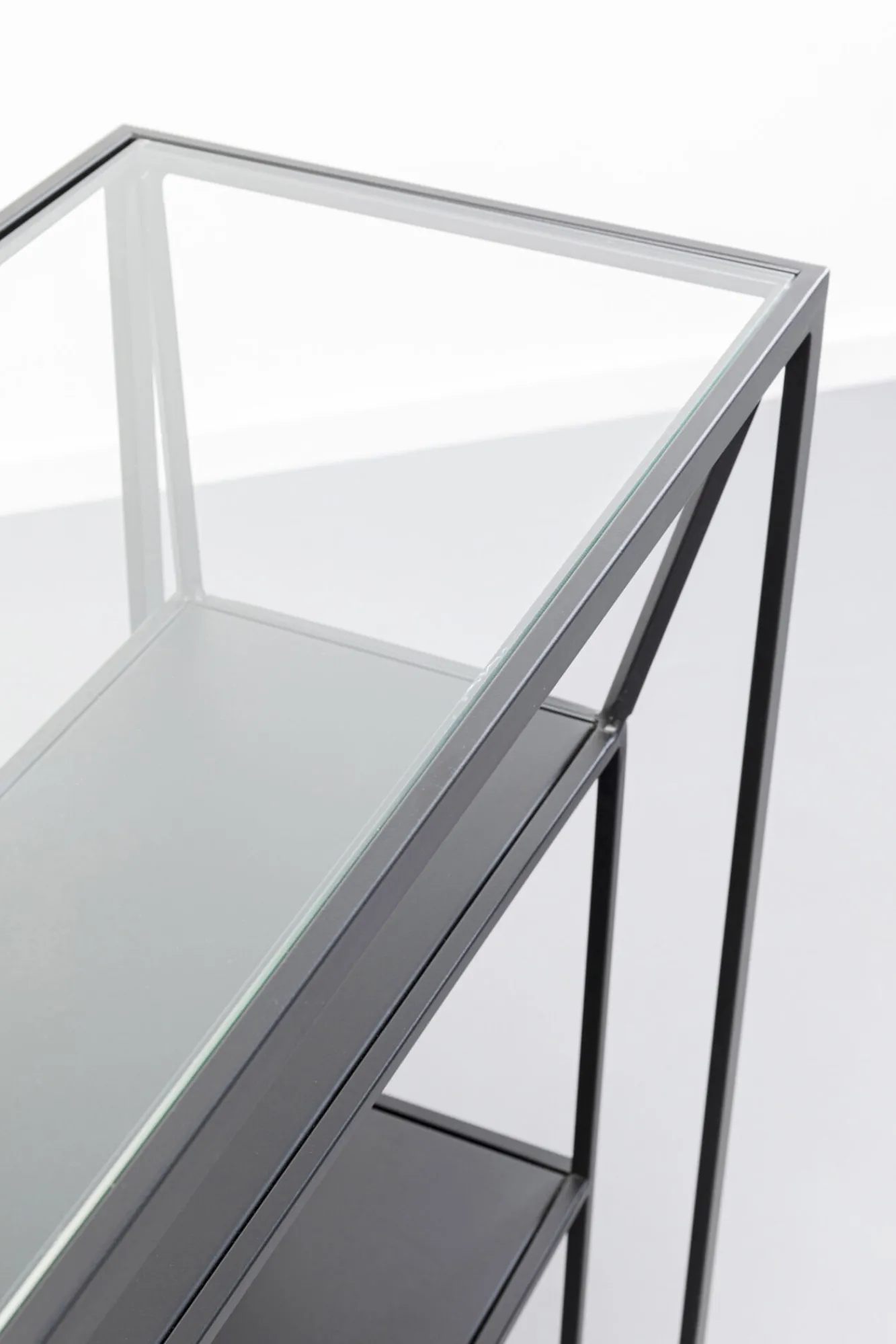Regał loft stal czarna i szkło transparentne 90×90 cm