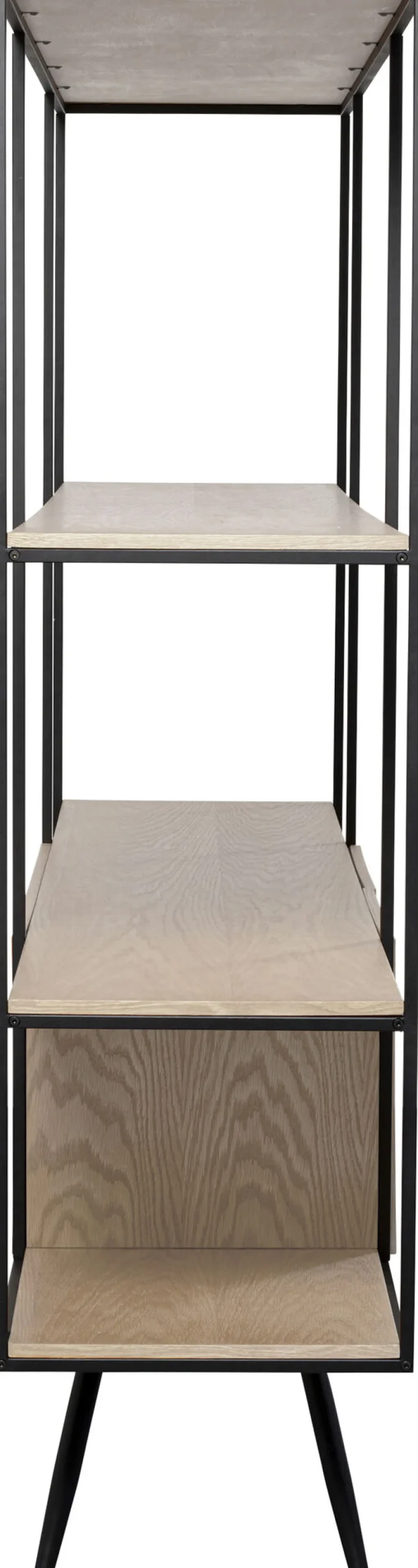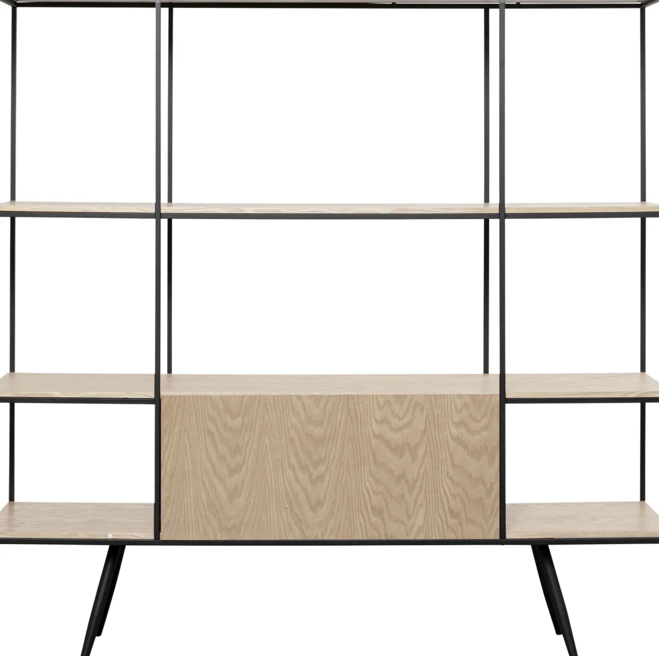 Regał ze schowkiem półki naturalne fornir dębowy rama czarna stalowa 180×183 cm