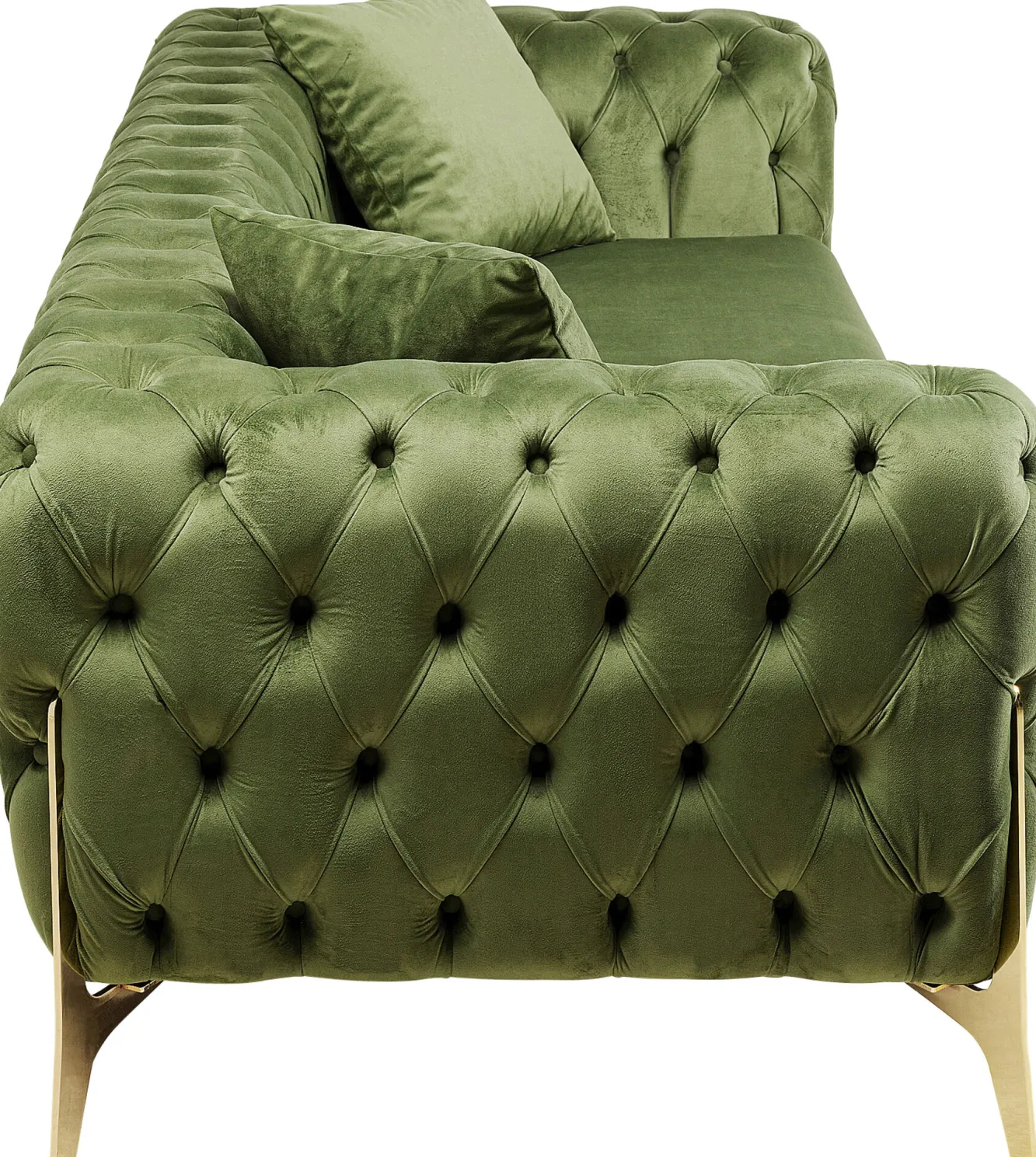 Sofa 3-osobowa welurowa pikowana zielona glamour 240 cm nogi złote