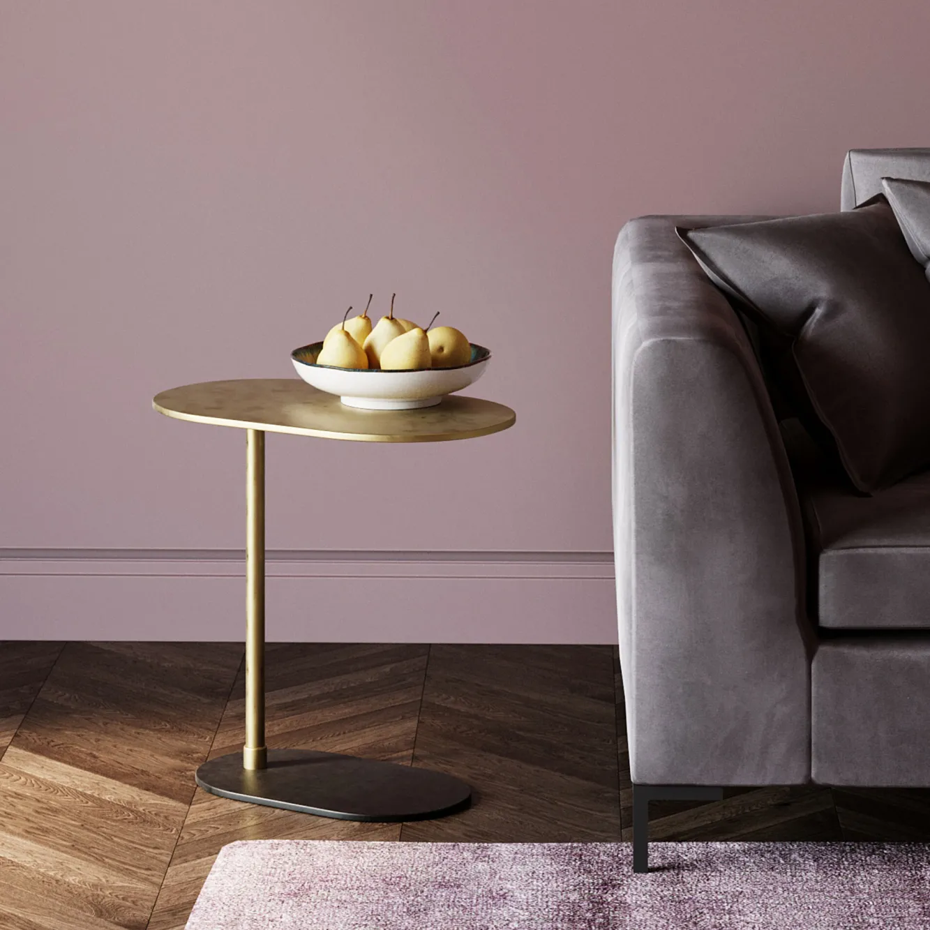 Stolik pomocniczy złoty aluminium 50xH59 cm czarna podstawa Podstawa: stal malowana proszkowo.Blat: aluminium mosiężn…