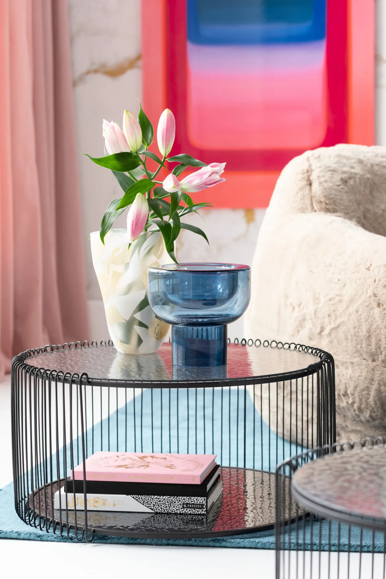 Zestaw dwóch stolików blaty szklane rama stalowa – kolor czarny Rama: stal malowana proszkowo.Blaty, półki: szkło b…