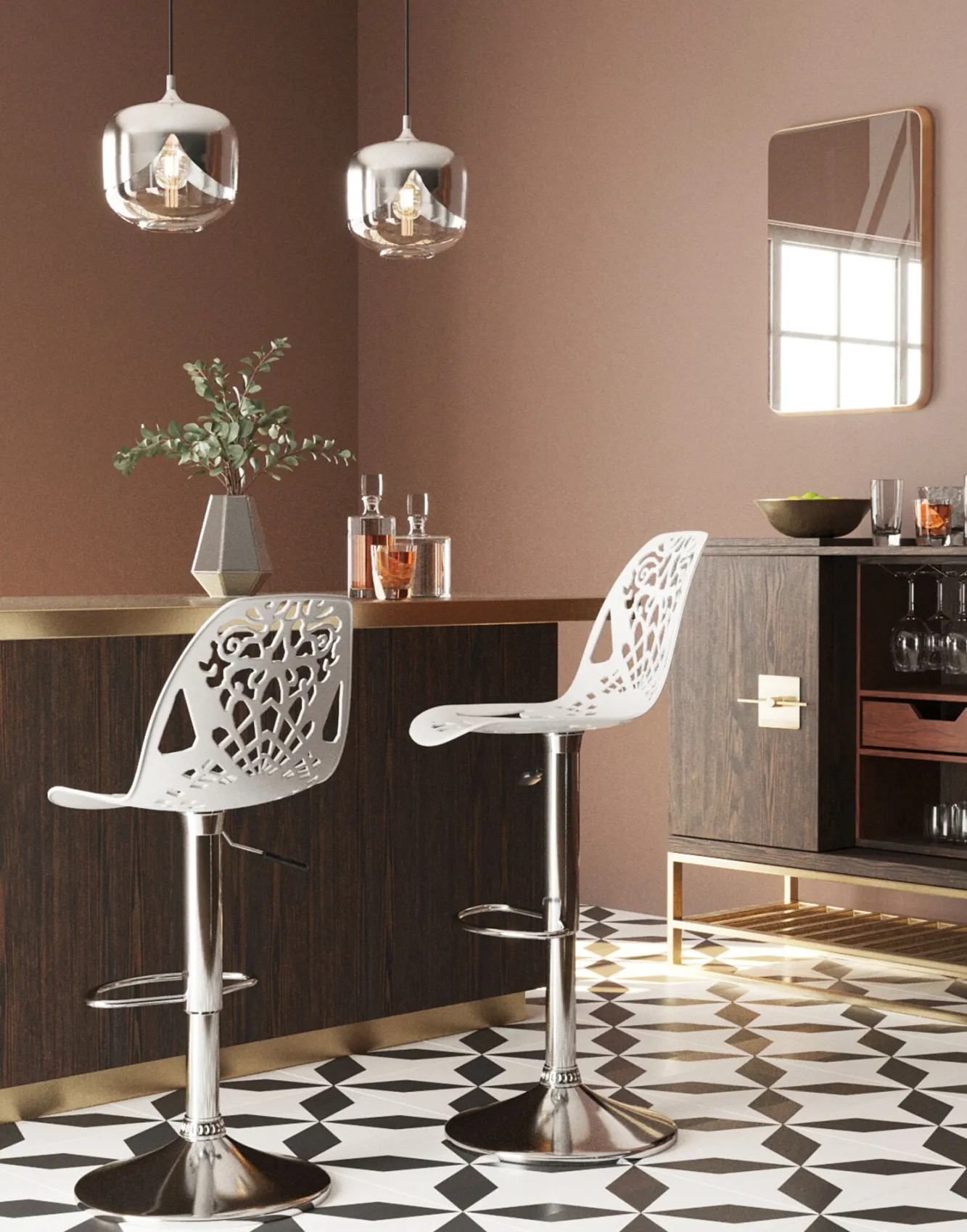 Wyprofilowane oparcie oraz podnóżek gwarantują wygodę podczas użytkowania. Regulacja pozwala nam dostosować hoker do naszych potrzeb. Białe krzesło barowe ornament wprowadzi nutę wysmakowania do każdego projektu.