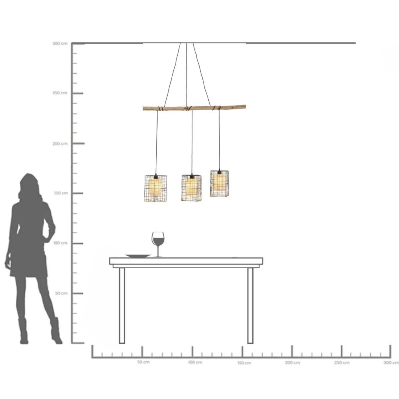 Lampa wisząca Three Grids Drewno bukowe naturalne.Klosze: stal lakierowana, ceramika.Wysokość regulowana.