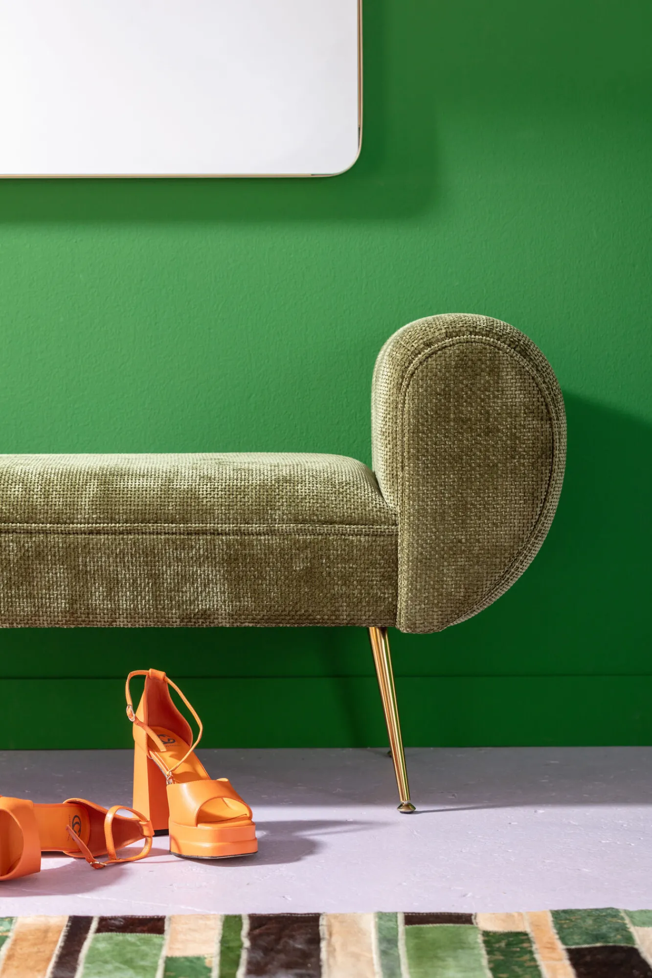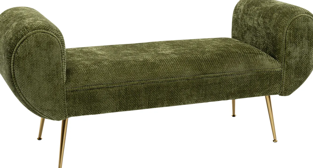 Ławka do przedpokoju zielona tapicerowana nogi złote 140 cm