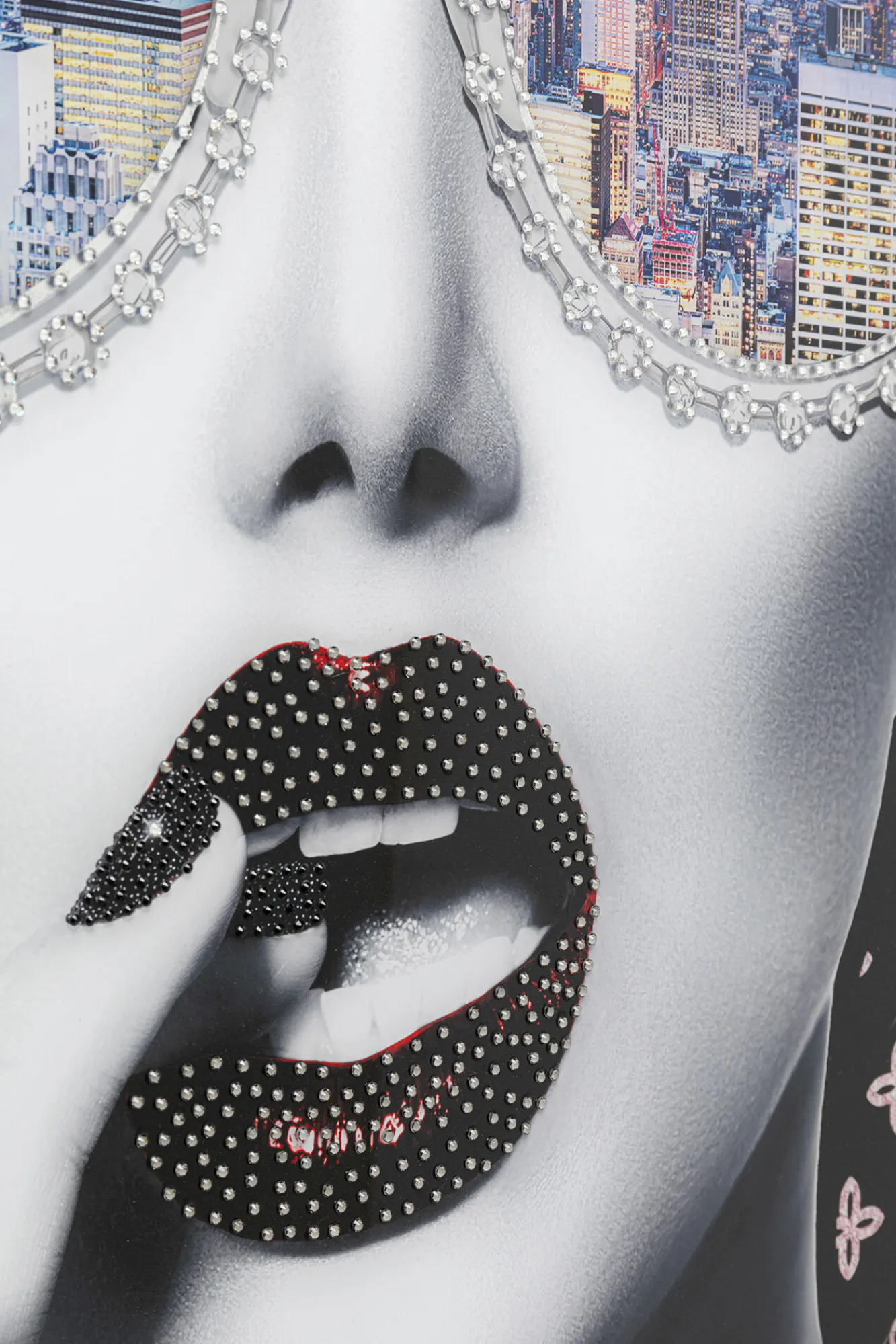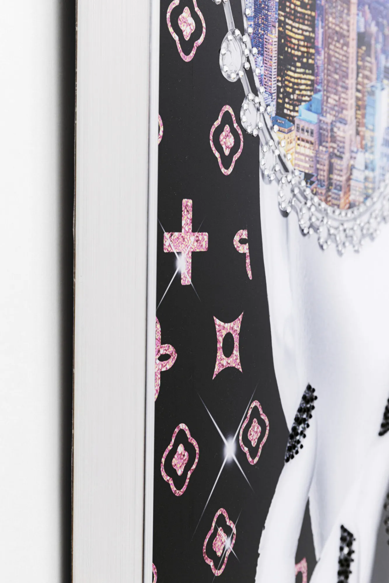 Wydruk na papierze artystycznym, ozdobne kryształki.