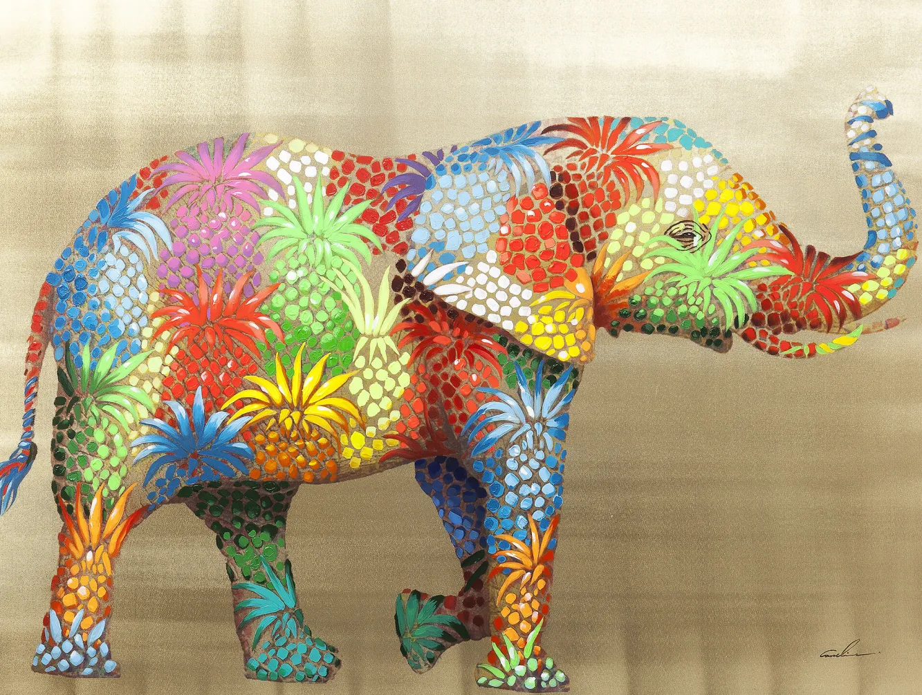 Obraz Touched Flower Elephant 120×90 cm kolorowy Część obrazu została namalowana ręcznie (farby akrylowe).