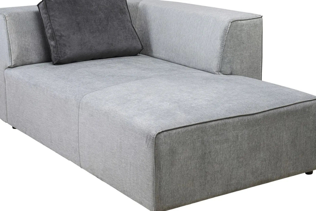 Nowoczesny tapicerowany komplet wypoczynkowy Infinity obejmuje kilka elementów – tutaj szary tapicerowany otoman z oparciem prawostronny o wymiarach (szerokość x głębokość x wysokość): 182x117x70 cm.