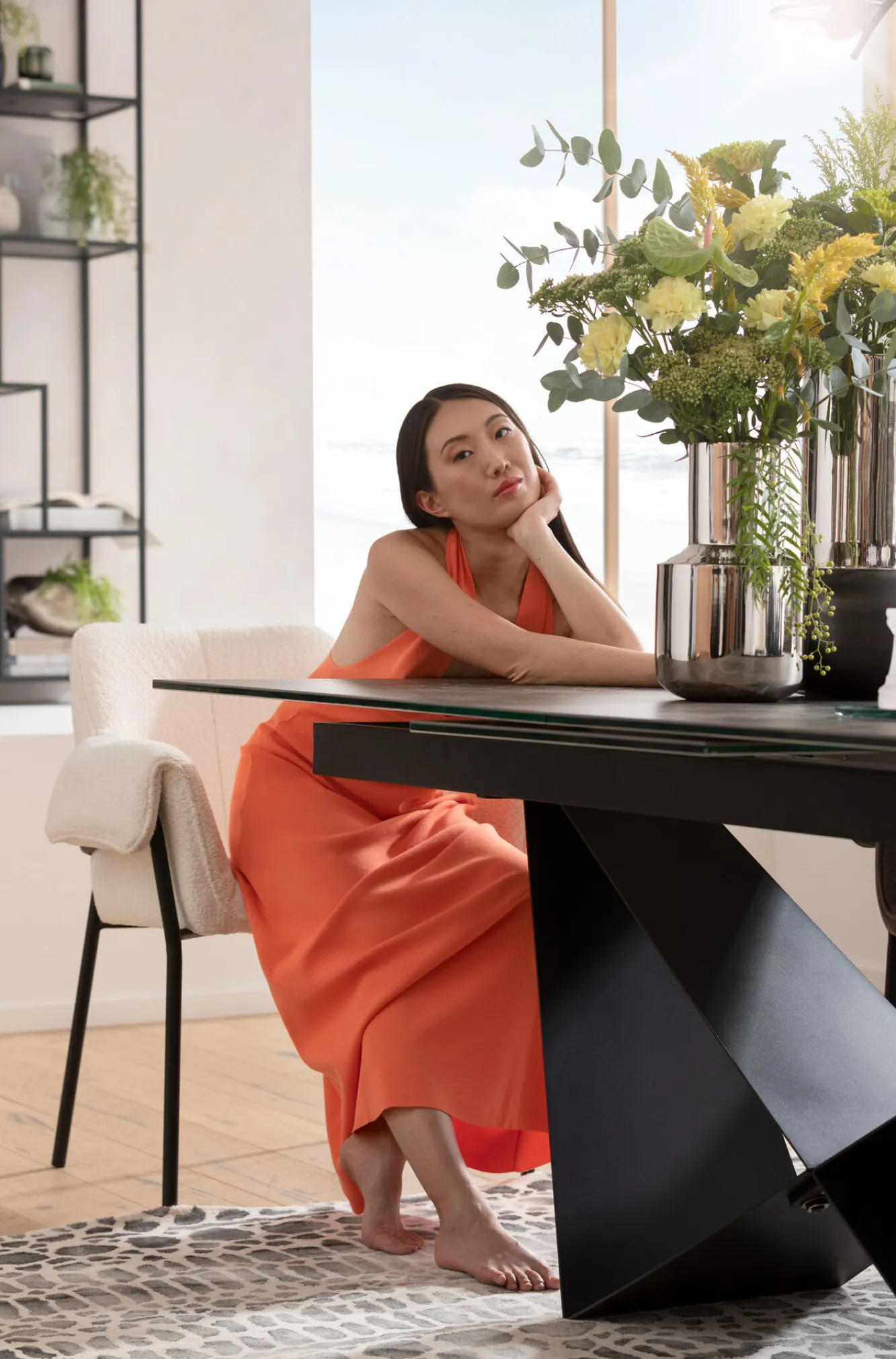 Stół rozkładany blat ceramika i szkło podstawa czarna 200-260×100 cm