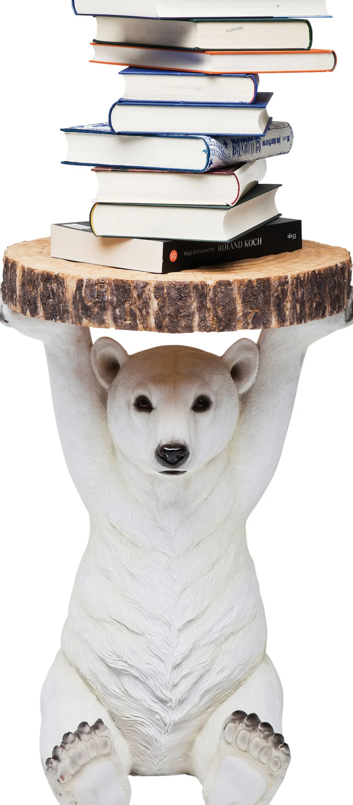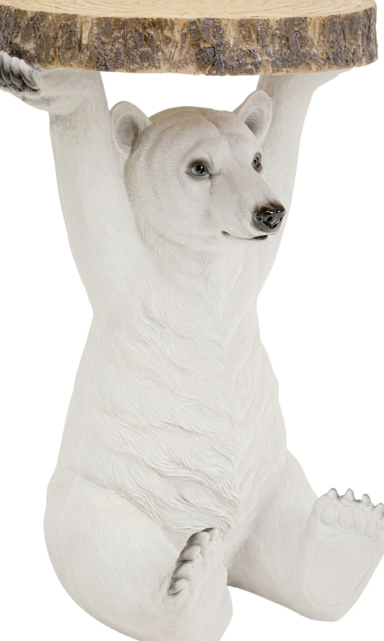 Stolik Kawowy Bear Biały Tworzywo Sztuczne Jeśli lubisz niedźwiedzie, a na pluszowego misia jesteś już za duży to stolik kawowy z serii Bear marki Kare Design jest idealną alternatywą. Stolik posiada okrągły blat imitujący kawałek wyciętego pnia, a nietypową nogę w postaci siedzącego misia polarnego wykończono z najwyższą dbałością o szczegóły. Tak więc jak masz ochotę wprowadzić odrobinę zwierzęcych klimatów do swojego wnętrza i codziennie raczyć się widokiem trzymającego Twoją kawę niedźwiadka to stolik kawowy Bear jest zdecydowanie dla Ciebie.
