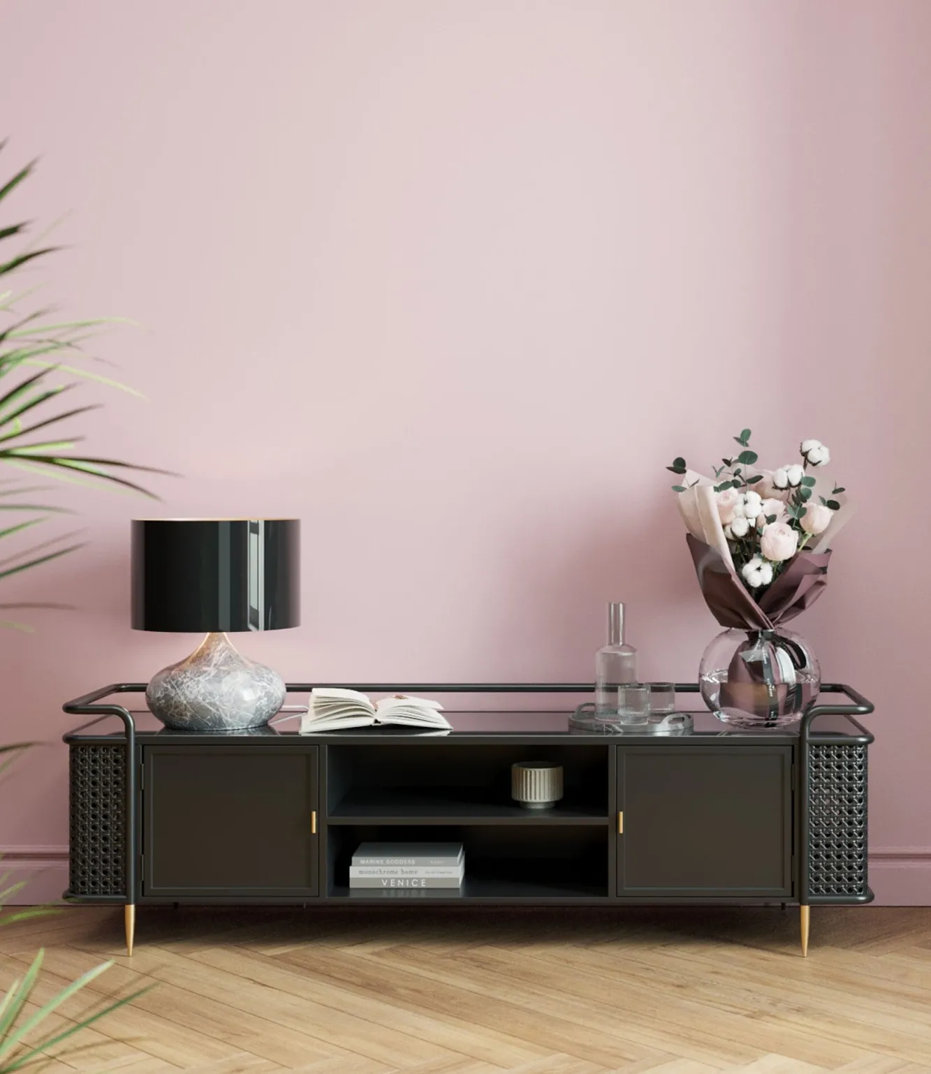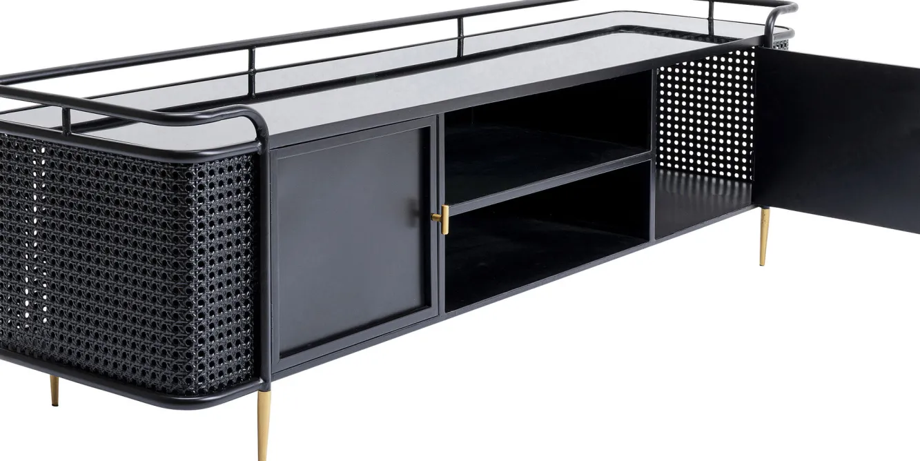 Szafka RTV stalowa czarna blat szklany 160×48 cm Rama, korpus: stal malowana proszkowo.Blat: szkło bezpieczne, hartowan…