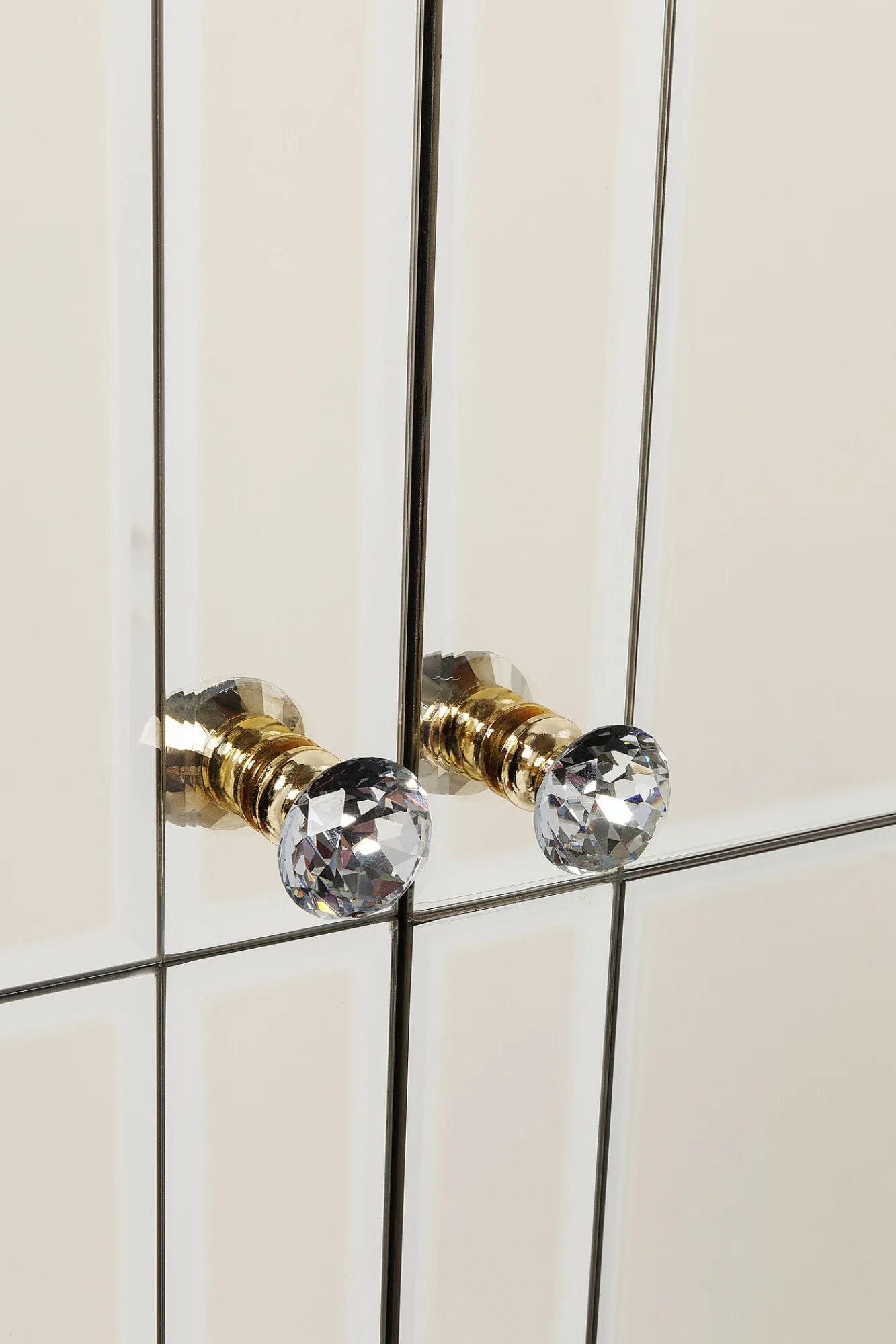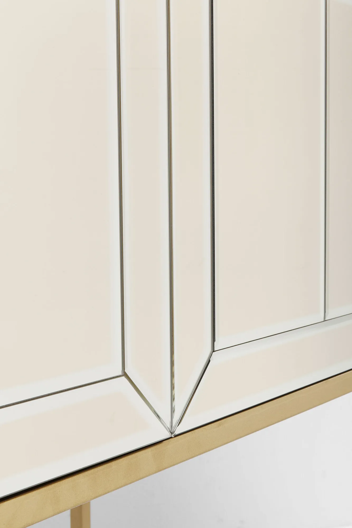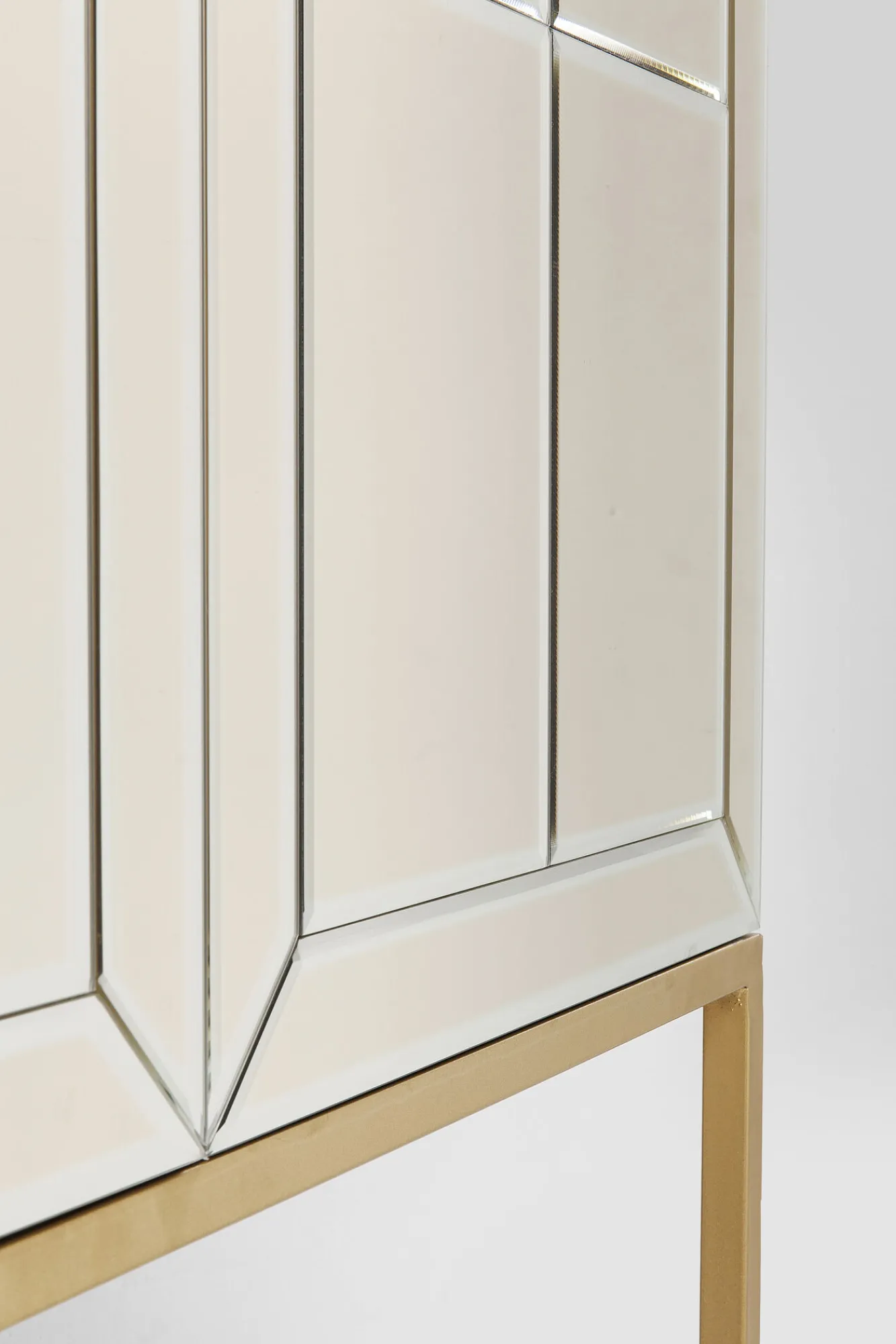 Seria nowoczesnych mebli ze szkła w stylu glamour Luxury oferuje szeroki wybór wyposażenia wnętrz – tutaj złota komoda z funkcją barku.