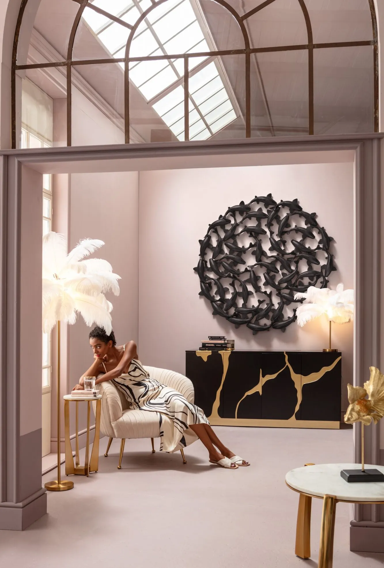 Dekoracja ścienna czarna ryba Koi włókno szklane Ø160 cm Ręczne wykonanie. Każdy egzemplarz jest niepowtarzalny i …