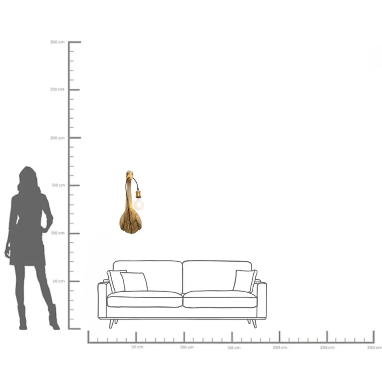 Podana waga kinkietu Heron (26×62 cm, złotego) jest przybliżona i ma charakter jedynie orientacyjny. Żarówka nie jest dołączona do zestawu.