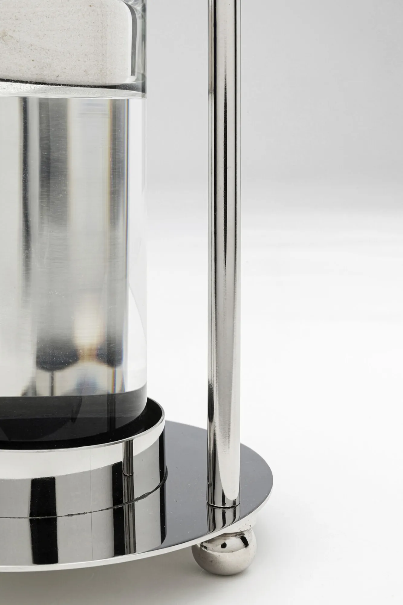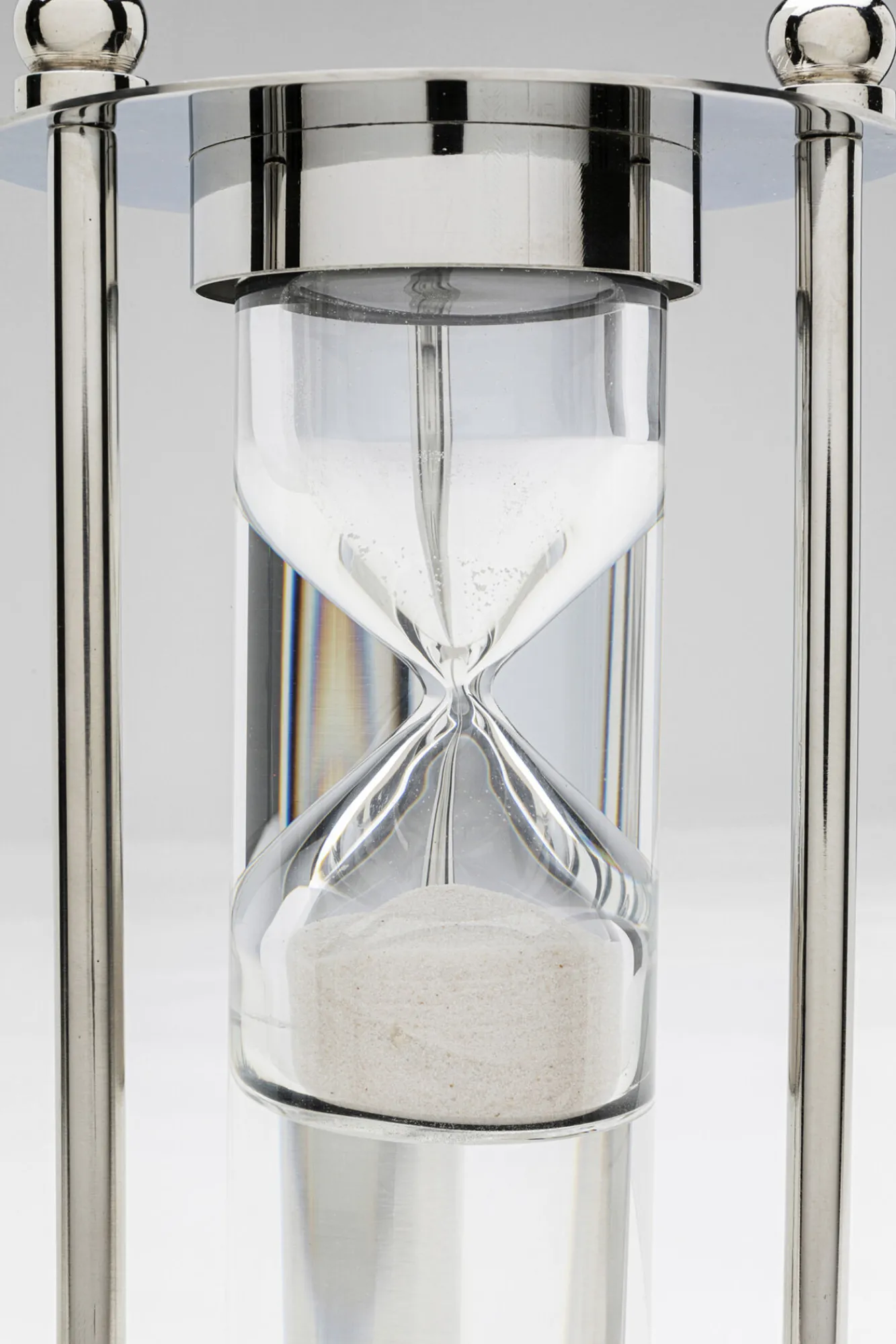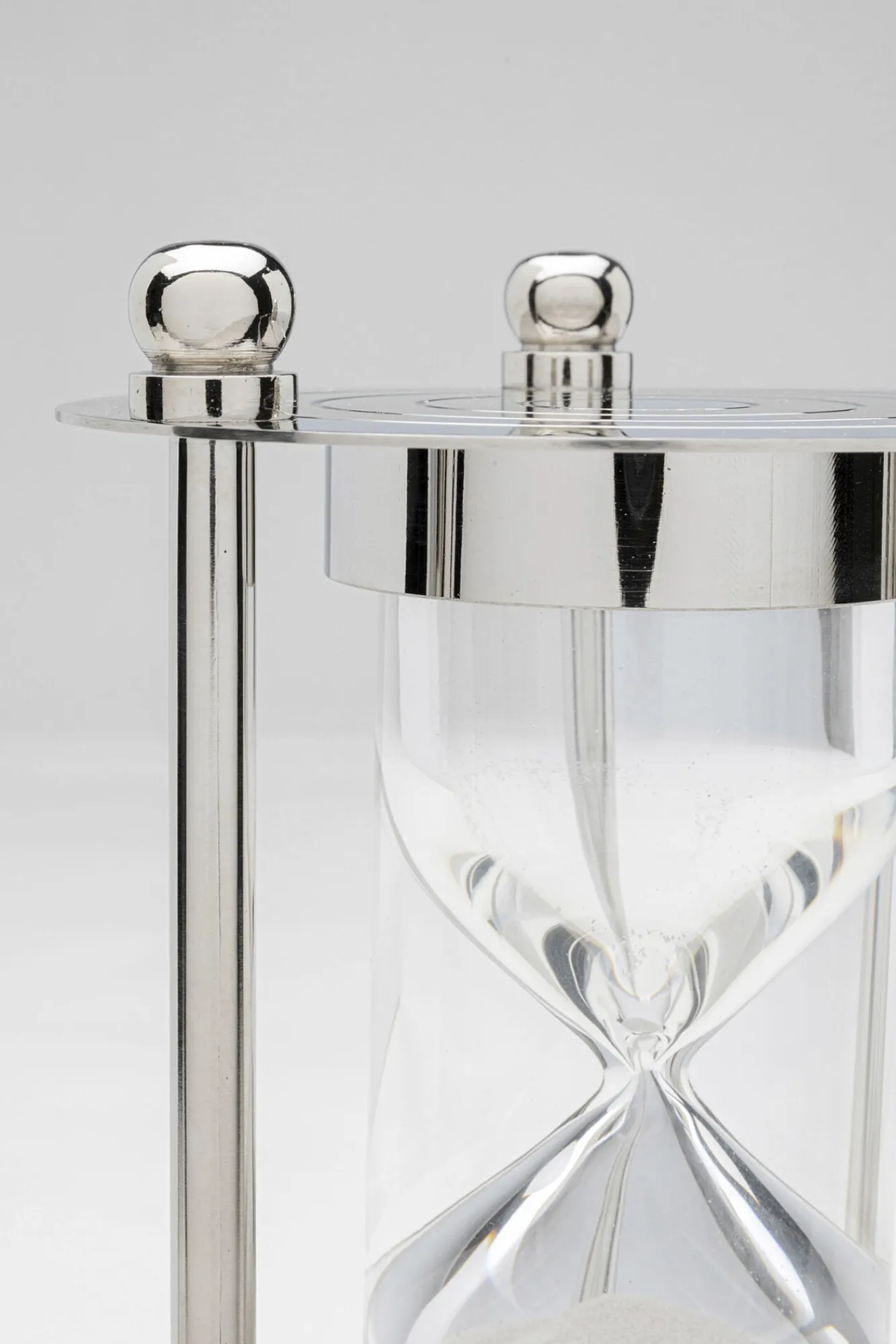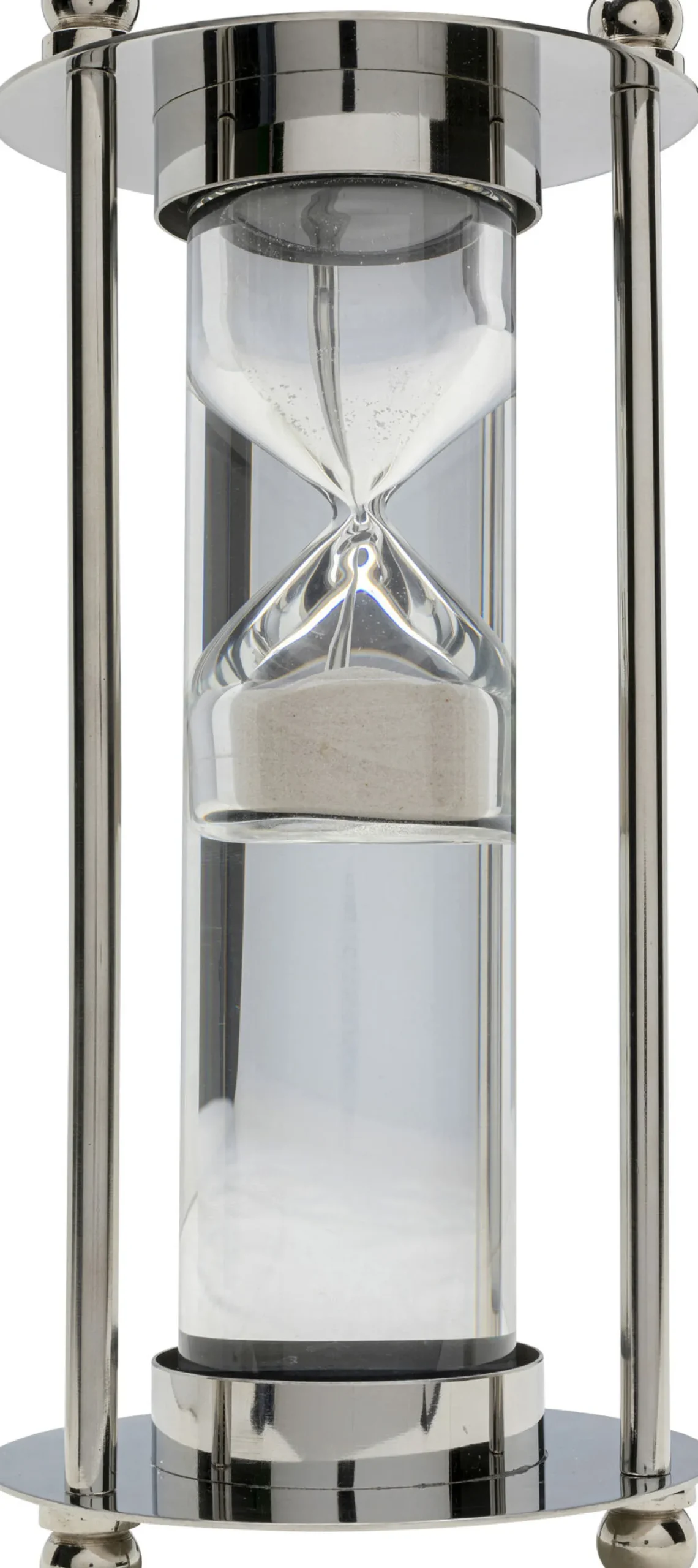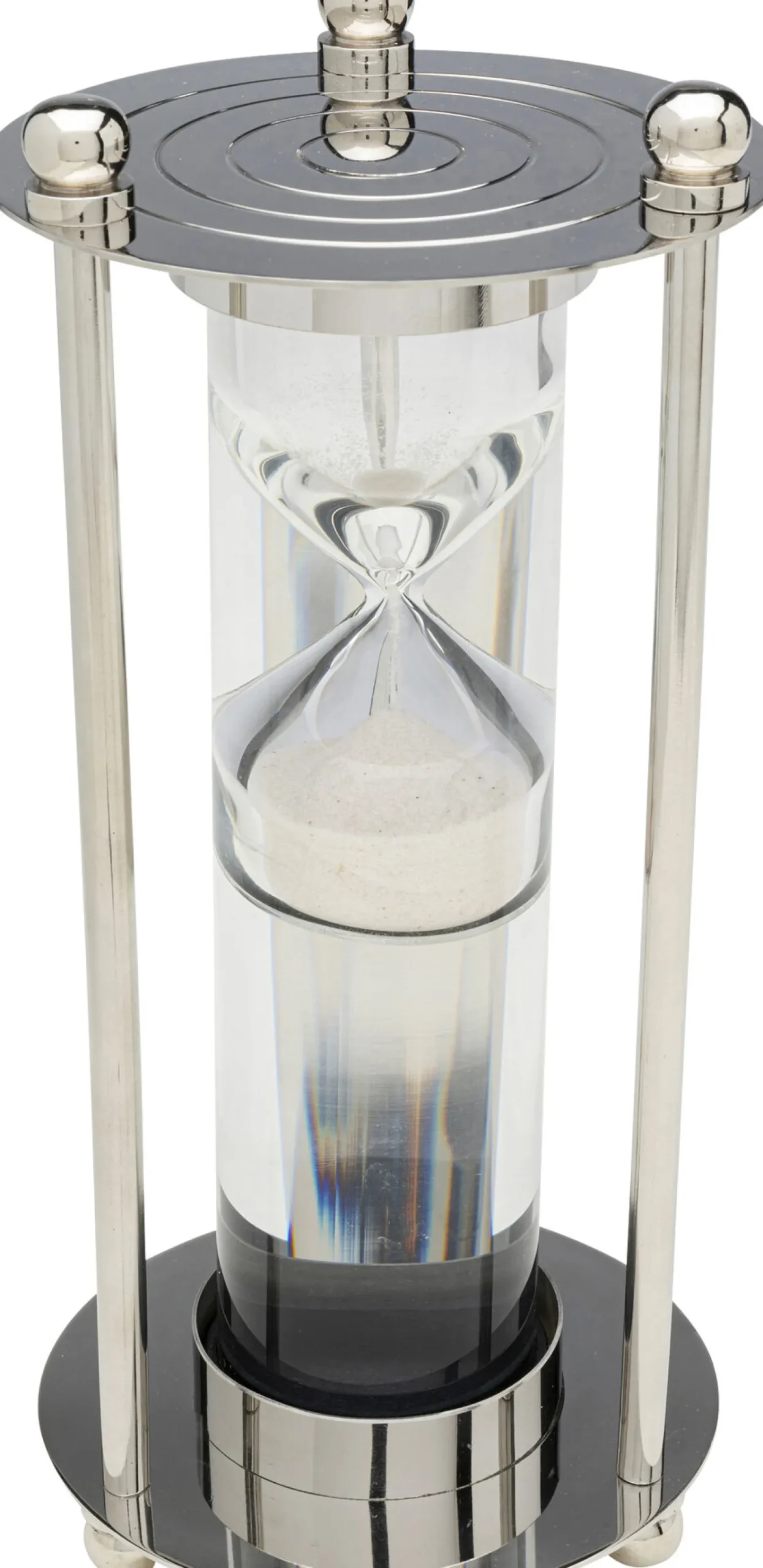 Klepsydra ekskluzywna srebrna stal niklowana i szkło Ø14×30 cm Materiały: stal niklowana, szkło, piasek.