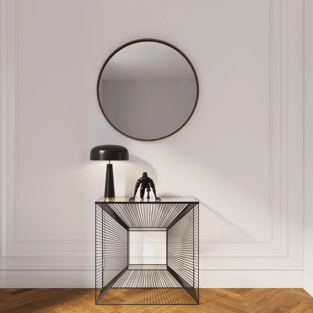 Best KARE Design Konsola do przedpokoju loft czarna stalowa blat lustrzany 120×33 cm – KARE