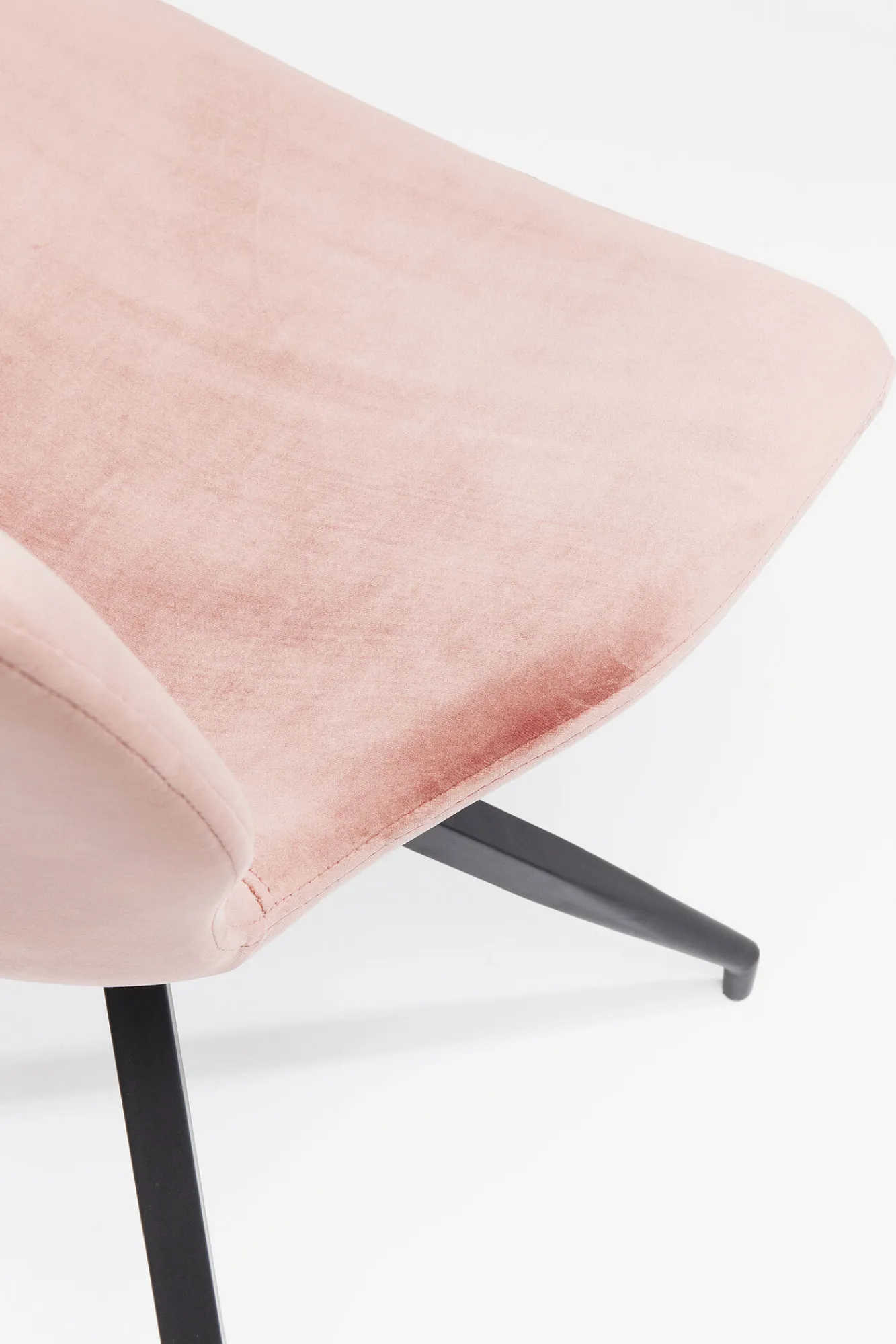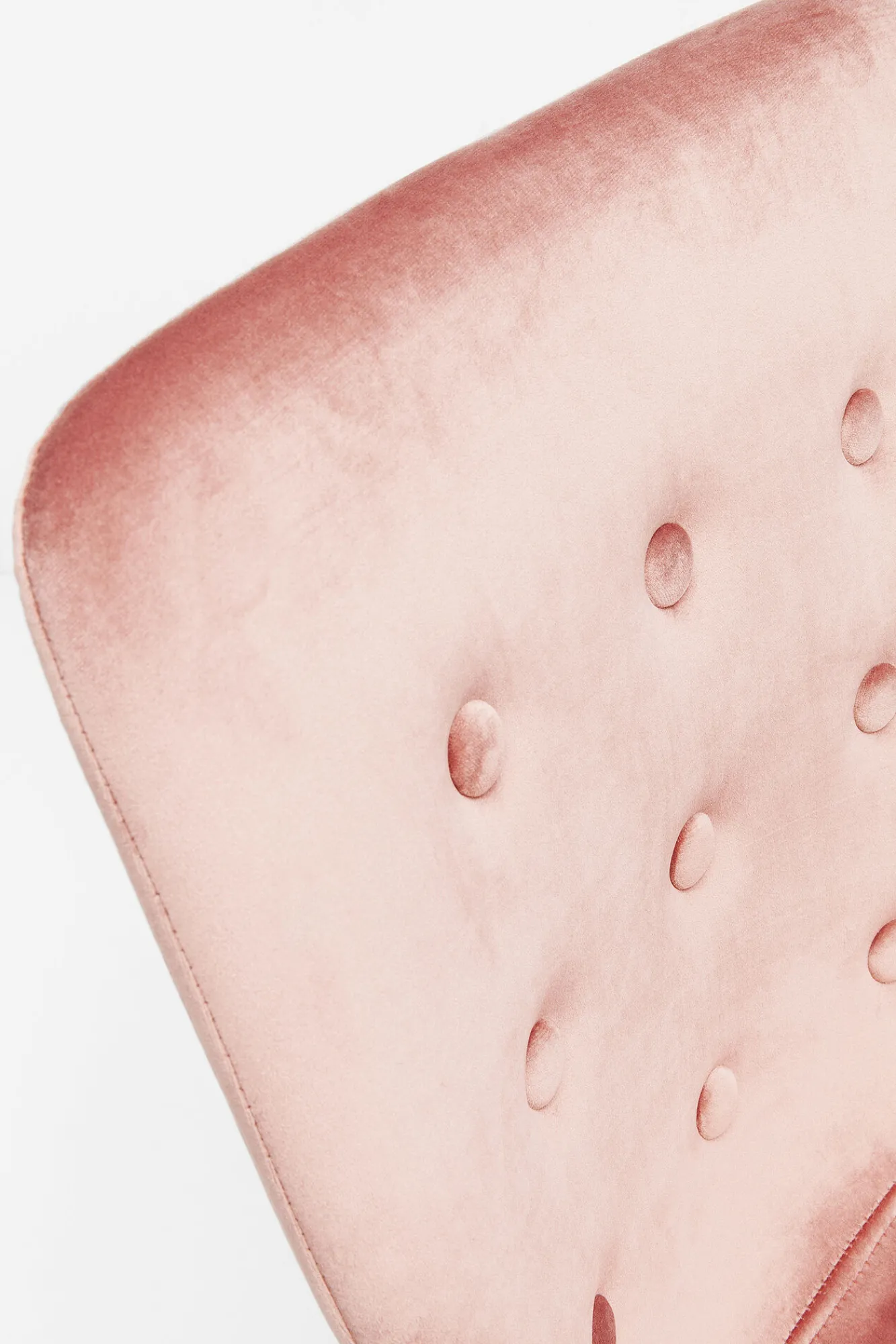 Tapicerowane krzesło welurowe w stylu nowoczesnym Butterfly dostępne jest w kilku wariantach – tutaj krzesło tapicerowane różowe na czarnych nogach.