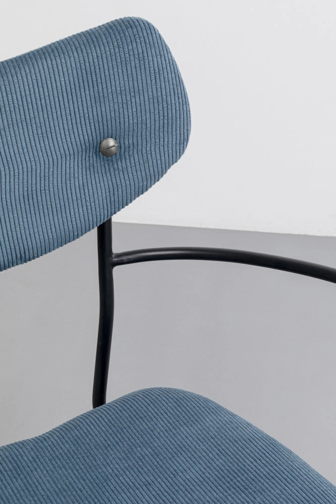 Krzesło z podłokietnikami niebieskie z czarną stalową ramą 59×82 cm