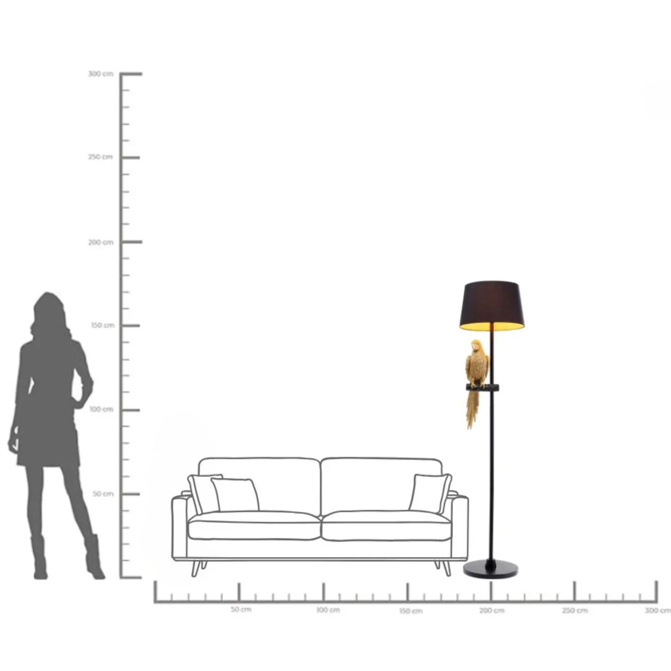 Lampa podłogowa Animal Parrot Ø40×176 cm czarno-złota Stelaż: stal lakierowana.Klosz: bawełna.Figurka dekoracyjna:…