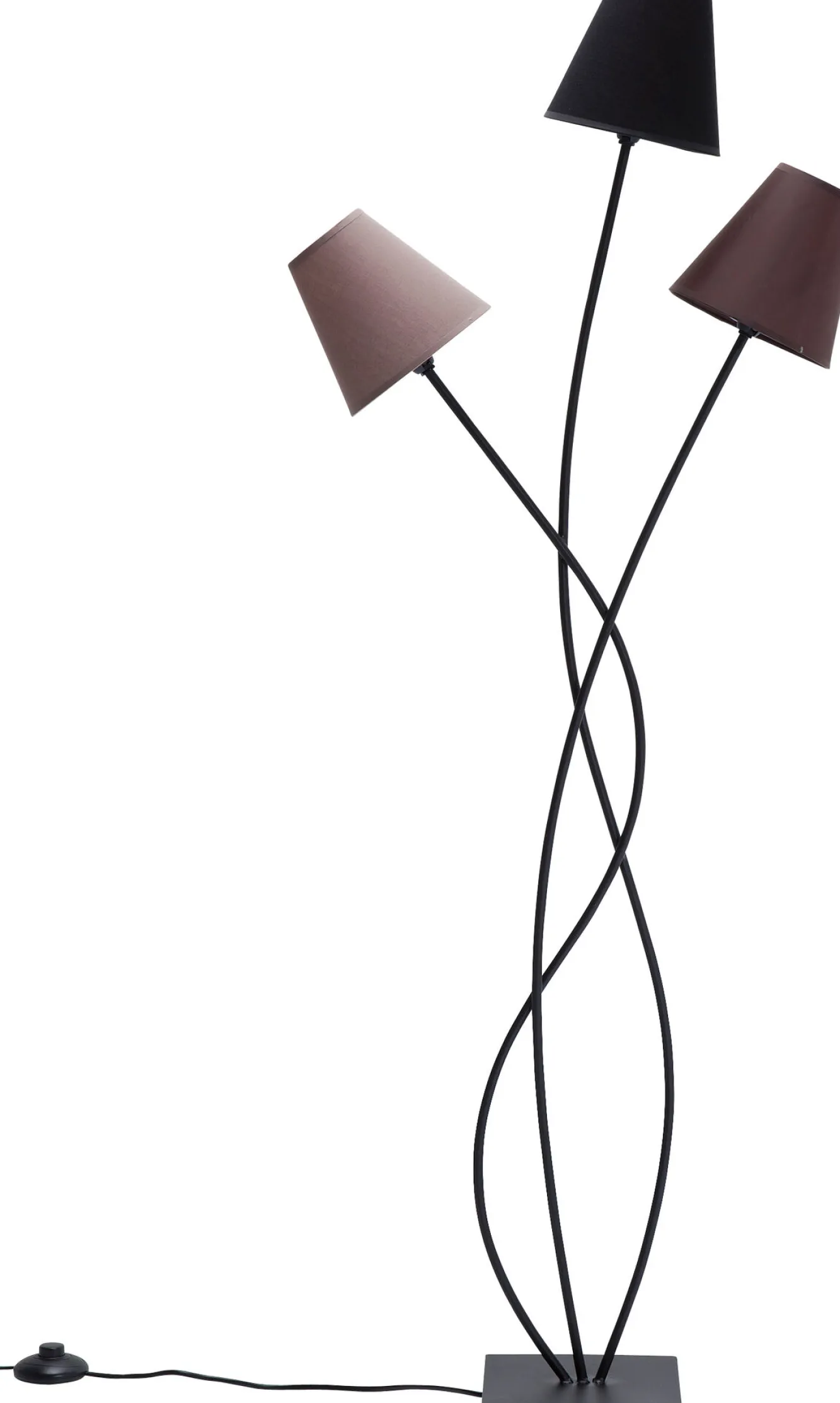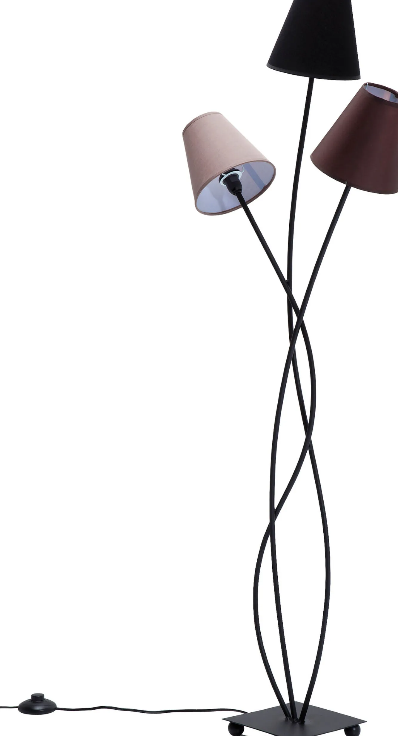Jeśli zaliczacie się do miłośników wyrafinowanego wzornictwa, raczej nie przeoczycie tej awangardowej czarnej lampy podłogowej w stylu nowoczesnym. Za tą propozycją skrywa się wizjonerska firma KARE znana z bezkompromisowości i trudnej do podrobienia estetyki. Niemiecka marka nieustannie poszukuje nowych inspiracji i tym zapewnia sobie pozycję w światowym home designie, bowiem jej projekty nigdy nie dają się sobą znudzić. Tutaj producent sięgną po inspirację naturą i oparł ten model na podobiźnie kwiatów. Prezentowana lampa metalowa swoim wyglądem przypomina wątły, ale piękny kwiat. Jej finezyjnie powyginane ramiona gustownie harmonizują z klasycznymi, zarówno w kształcie, jak i barwie abażurami, dzięki czemu prezentowana lampa daje przyjemne, ciepłe światło. Stonowana kolorystyka i dekoracyjna, ale pozbawiona krzykliwości estetyka, nasycają tę lampę znaczącymi predyspozycjami aranżacyjnymi.