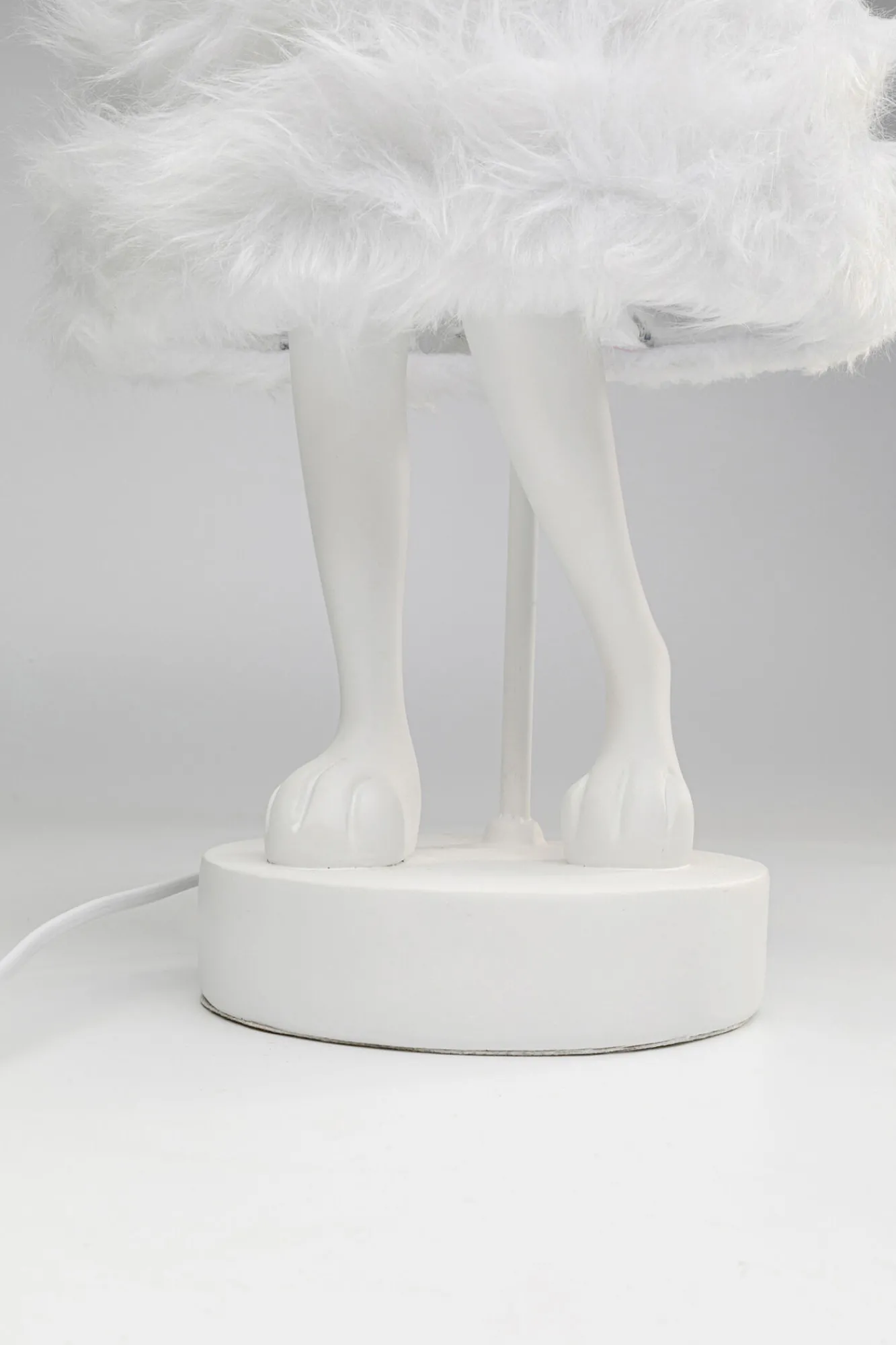 Lampa stołowa biała królik abażur futrzasty 68 cm