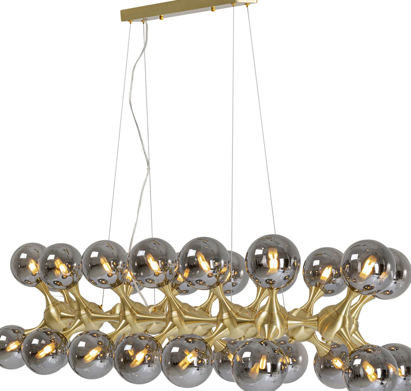 Lampa wisząca Atomic Balls 140 cm złota – klosze przydymione Materiały: stal mosiężna, szkło barwione.Wysokość r…
