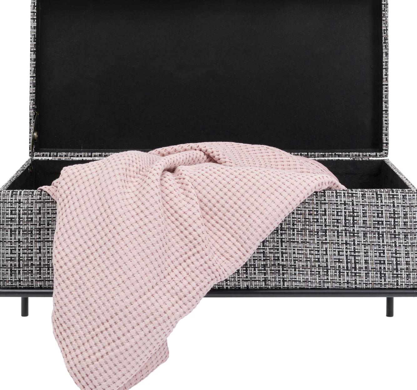 Ławka ze schowkiem Buttons Storage 80×43 cm czarno-biała Tapicerka: len, poliester.Pianka poliuretanowa 30 kg/m³.Nogi…